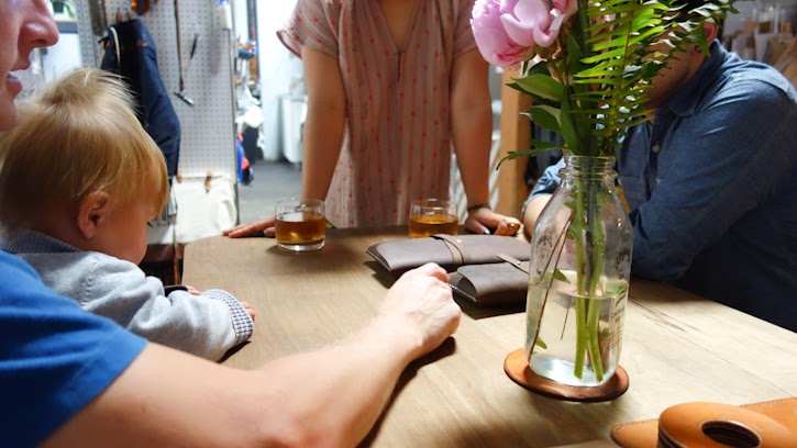 We had an awesome studio visit of 1.61 Soft Goods this past weekend. We have been working with Diana and Wes of 1.61 Soft Goods on utilitarian yet beautiful leather artifacts for Baum-kuchen (including a really popular leather zipper case for Traveler's Notebook!) so we were thrilled to see where these items are hand crafted one by one.