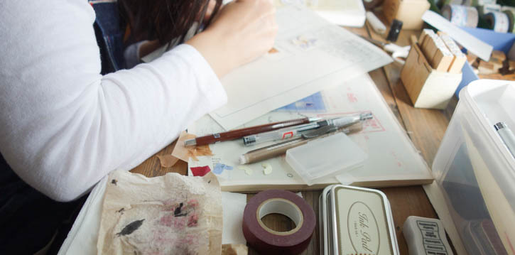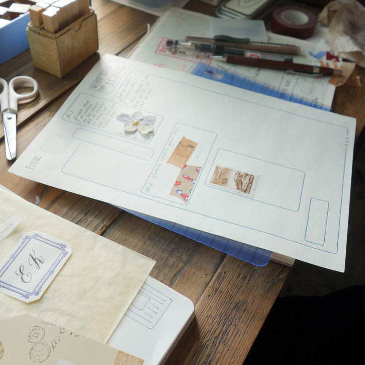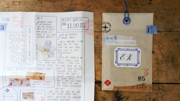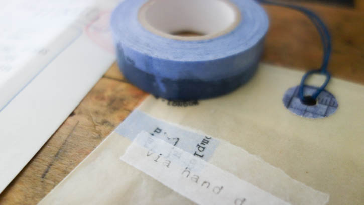 If you like sharing little analogue goodies with your friend along with your letter (imagine... your favorite clips, an assortment of masking tape samples, a memo card...), you can create a very personalized envelope with Classiky Glassine Envelope & Label. Labels in this set are vintage inspired so it automatically sets the beautiful vignette and we love how the envelope is slightly translucent to reveal a little bit of what's inside. Glassine envelope is slick in texture so regular stamp ink will not stay on. So make sure to use a stamp pad with a permanent ink if you love adoring your envelope with your favorite stamps! We created a layering effect by overlapping masking tape and translucent washi papers with a memo written via typewriter. If you don't have an actual typewriter available to use, no worries. You can easily find a typewriter-inspired font on your computer and type and print your message!