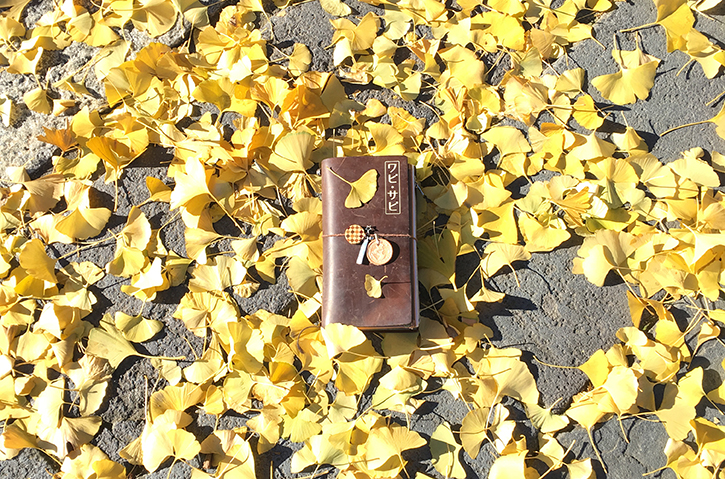Other modifications to her TN include the foil stamp of the Baum-kuchen wabi-sabi stamp (the embossing service coming soon to BK customers!!!). Wabi-sabi is a concept that Ame has long loved, accepting imperfections and fleeting beauty. She also has a BK daruma stamp on the inside cover to remind her to always have goals. A TSL Leather Card Pocket is sewn in the back to hold her bus card.