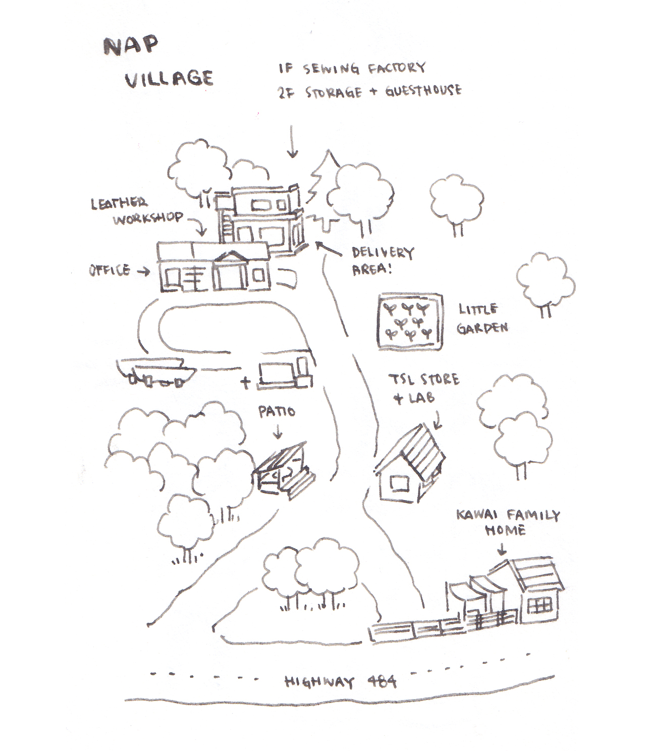 Nap Village, where our beloved TSL products are made, is found in the middle of the mountains. The building where the leather workshop and sewing factory reside was an old elementary school built after WWII. In the vicinity, there is the TSL Store & Lab where you can buy their retail goods and enjoy a cup of coffee. (Once a month they even sell bread!!)