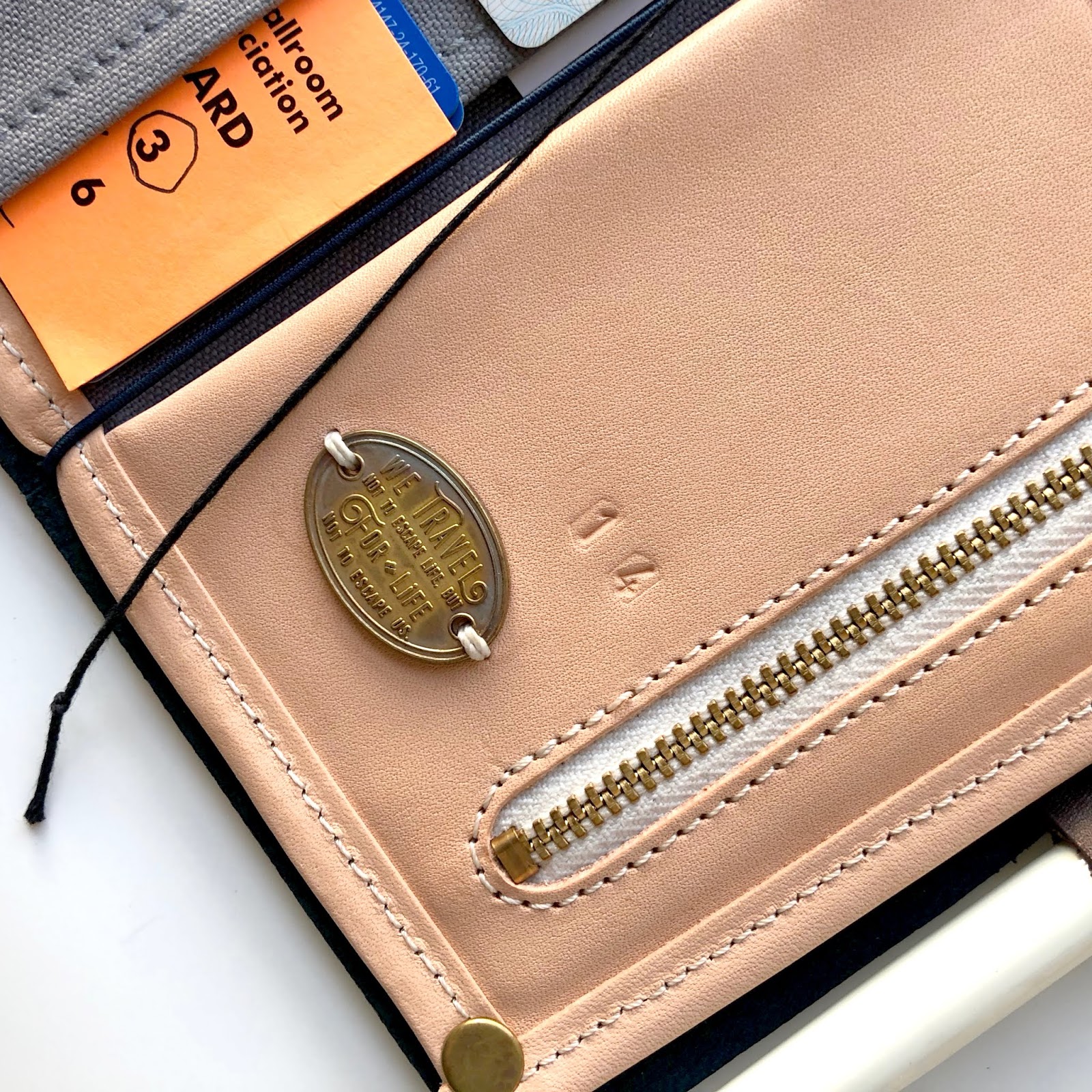 For journaling with light pockets. On-the-go observational drawings, quotes, phrases, poetry, and prose go here. To inspire my writing, I’m getting titles of favorite works of literature embossed on the cover. I’ve got HOWL by Allen Ginsberg so far. Inside I keep a TSL x BK Travel for Life Wallet. A gift from my partner, it’s stamped with “14”, our lucky number and anniversary date.