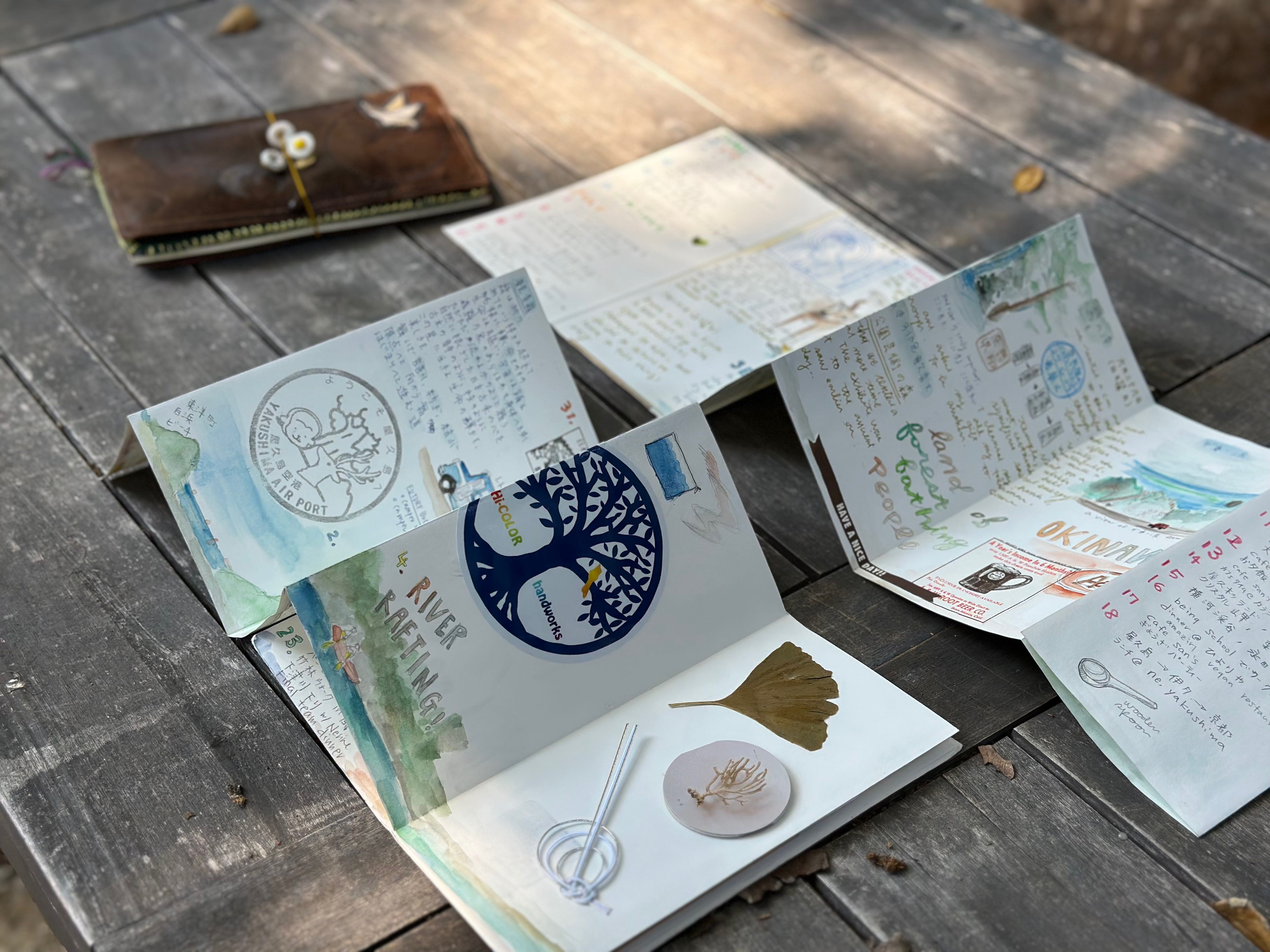 Now that I am home, I occasionally flip through the accordion as a reference and to feel into the experience I had during our travel. I glued the refill to a page on my A5-size MD Cotton Thick Notebook, so it’s a part of my current notebook ecosystem (thick and beautiful). Being independent refills within an A5-size notebook, the time on the road feels integrated in the bigger flow of this year, yet distinctly honored as something a little different from my everyday in the canyon.