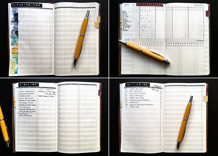 She basically does everything the same way as when she was bullet journaling, using the same symbols (triangles for events, checkboxes for tasks, bullets for notes) and migrating tasks. Her new system allows her to forward plan and saves time by not having to draw everything. She uses a B6 slim insert for tracking spending, notes, and making lists that are only temporarily important, such as packing lists for travel. She still refers back to a Collections insert she keeps in a Traveler’s Notebook so she can see old-but-still-active lists or add any new collections that come up.