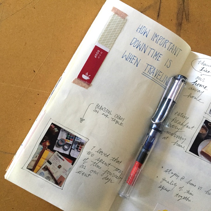 I did something similar when we went to Japan this past June – kept my travel refill with me at all times, along with a small zip pouch that held waterproof pens, my water brush, travel watercolor set and one (!) roll of washi tape – and took notes and made journal entries on the go. I was able to record so many memories in the moment, much better than if I’d waited and tried to remember everything once we got home. My Japan journal is totally precious to me and I love to go back for a “visit” every time I flip through it. <3 Cheers to adventures!