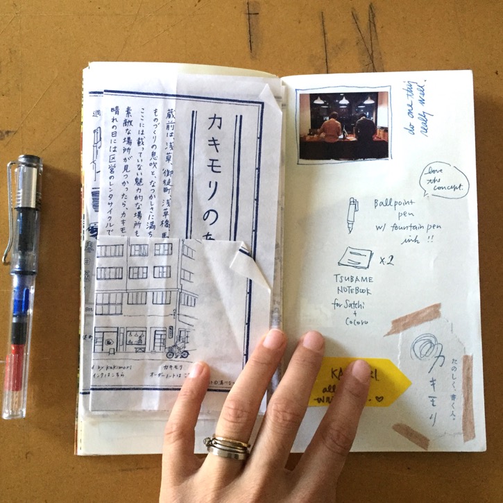 From home... I brought one last TN Pan Am refill notebook I had saved to use as a main travelog notebook. I carried the notebook always with me while we were in Tokyo inside of my camel Traveler's Notebook. Having the notebook always with me was super awesome since there were so many "stamp stations" in little stores we visited including Traveler's Factory and the size of the TN refill felt perfect. It's not too small but not too bulky.
