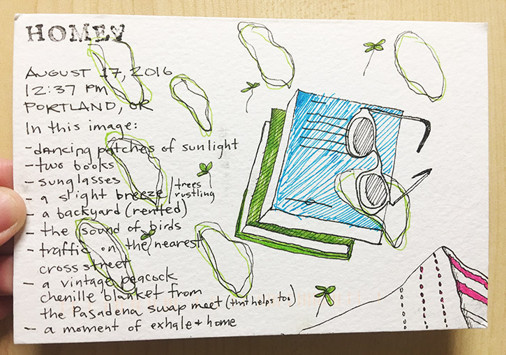 I asked several friends to send me a postcard of what home represented to them. What manifested was beautiful articulation of home, each unique and magnificently idiosyncratic.
