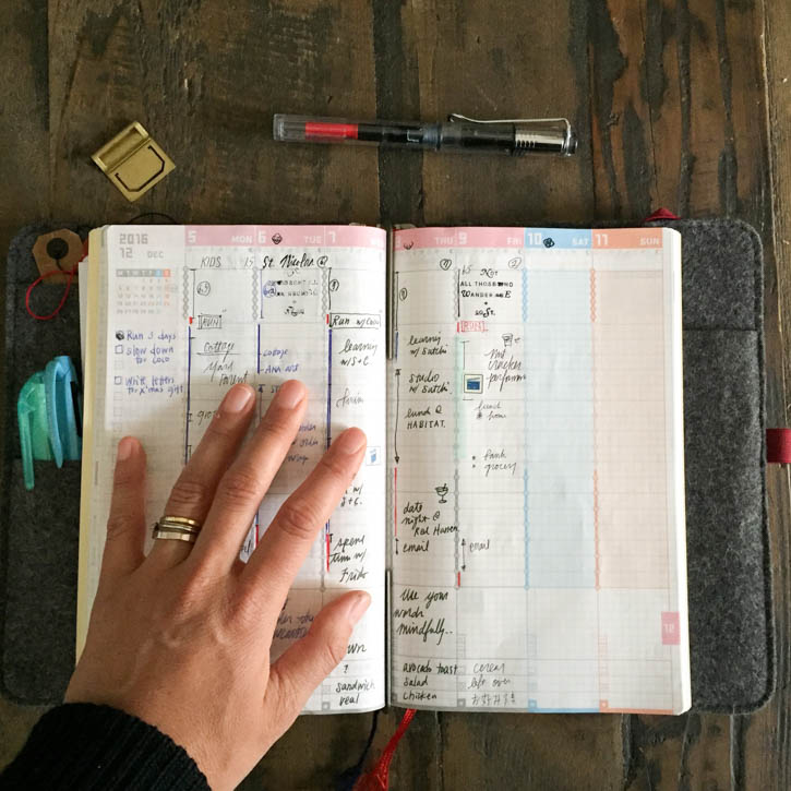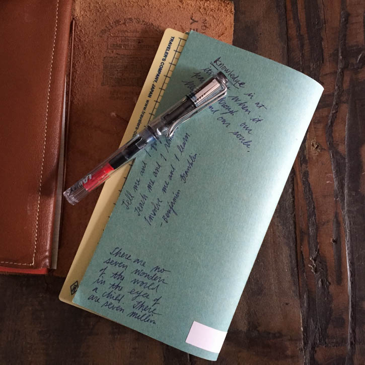 Recently I realized how important it is to just braindump my thoughts each night without editing. Nothing visually pretty about the page and it doesn't need to be and I will most likely not read back these pages. The process of writing is truly everything. I'm using the MD leather cover with Hobonichi Avec right now. But really... any notebook compatible with fountain pen writing will totally work for me.