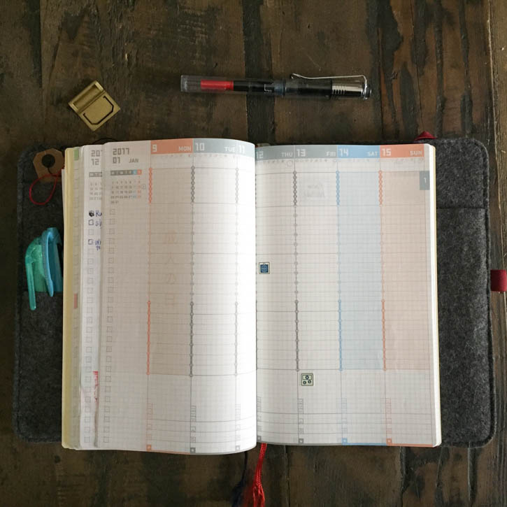 I came across Jibun Techo while we were in Tokyo in October and their weekly system with dedicated space to track 24 hours everyday really intrigued me. So I decided to give it a go... to sit down every night and quickly jot down how I used the time on the day. The notebook is in my Roterfaden and I am using the monthly page of the same Jibun Techo 2017 notebook for documenting what is happening at Baum-kuchen.