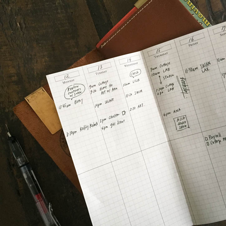 In order to make Traveler's Notebook system work for my current needs, I asked Frido if he could design a loose leaf weekly dashboard I could incorporate. So I can have a singular location where my to-do list goes to as well as a place to sort out my week when I get to each Sunday. Detailed reminders and notes that are too much to be captured on my monthly planner fall on this dashboard page. This is helping my productivity tremendously and giving me peace of mind. Added bonus: I don't have to carry my previous to-do lists and other "reminder" kind of notes inside of my Traveler's Notebook once tasks are done. I love keeping my Traveler's Notebook lightweight and compact. (Crossing my fingers I can share this BK Dashboard with you soon. Frido is working with our local printer right now:)