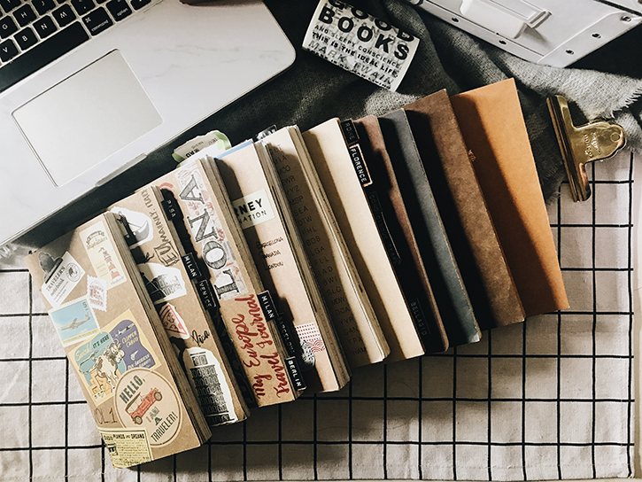 Her analogue system is all about journaling. She uses her Hobinichi to write down bullet points of the things that happened in her day, versus scrapbooking/journaling when she is on short trips. She uses the Midori MD Diary for expanded writing, not necessarily daily writing, but capturing things when she really needs to talk to herself or write down important things.
