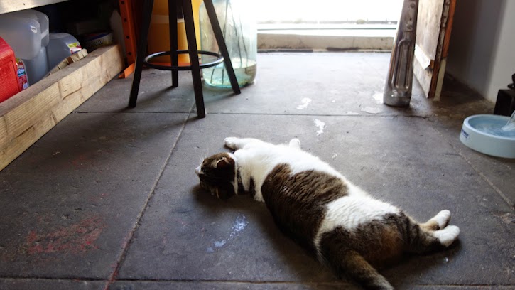 Their workspace located right outside of the up-and-coming Arts District in downtown LA was filled with inspiring vibe. The lofty space, specialized tools, leather scraps... Frido and I both inhaled a healthy dose of creative energy the morning. Coco and Satchi kept themselves pretty busy with their cats (scroll down to see Coco vs. kitty on the floor shot) while we chatted more about our future collaboration over a utilitarian make-shift table. I also loved that there were a lot of beautiful vignettes and traces of lived-in feel. You can tell that they spend a lot of time there pouring their passion into their crafts.