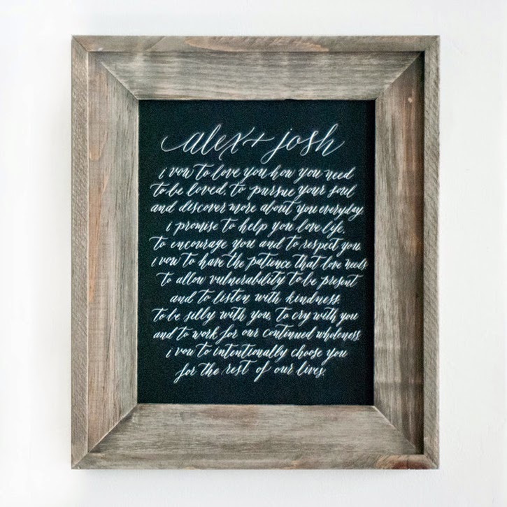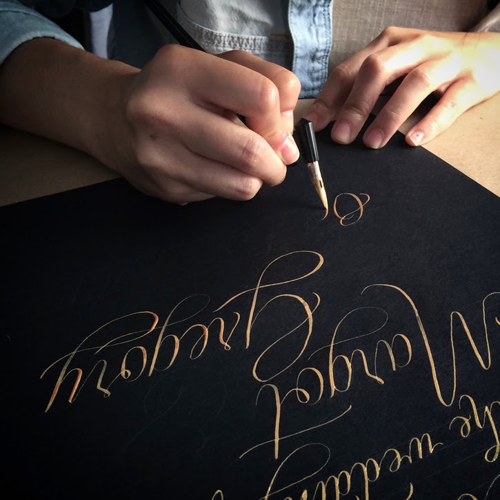 In my former life, I spent most of the work day looking at spreadsheets. I love that calligraphy is a departure from that experience - it's tactile, creative and a way to unplug from the distractions of the modern world. I also really enjoy that moment when I complete a project, knowing that I've brought something to life. It's gratifying to be able to hold the piece in my hands, study it as a finished work and send it out into the world.