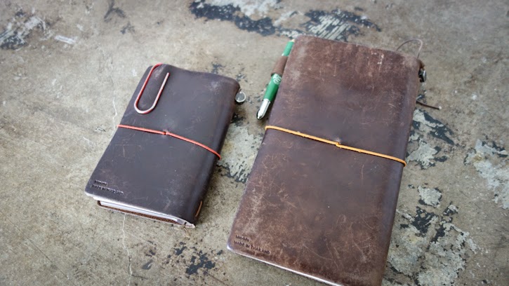 The Passport Size was used about two years when my life was little less complex. I carried it as my wallet/monthly planner and note taking. You can see the difference between 2 years vs. 6 years of wearing in.
