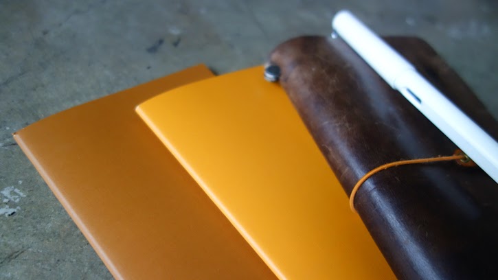 One thing I decided to do as a new experiment was to use the TN Weekly Vertical (also available as 2015 dated Weekly Vertical) as my modified bullet journal / to-do list. I already have a monthly refill as a planner, Kraft notebook as a place to capture my idea as well as 1.61 [Essential] as a wallet so I was worried if my Traveler's Notebook becomes too thick to carry... but 3 notebooks + one leather insert still seems to work as a compact system.