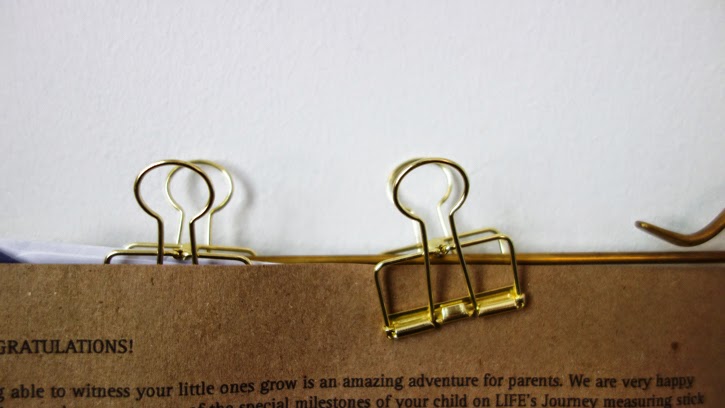 I wish all the paper work I handle at my desk is as beautiful as the stationery we carry... but for now... tax form, receipt, bank statements... look the way they do. So when I stumble on the idea of using the Superior Labor Brass Hanger as a place to clip papers... to create some kind of order, I was beyond thrilled! I can categorize and clip different papers, forms and correspondence on hangers. Multiple hangers can be placed on a single nail creating a neat but visual order.