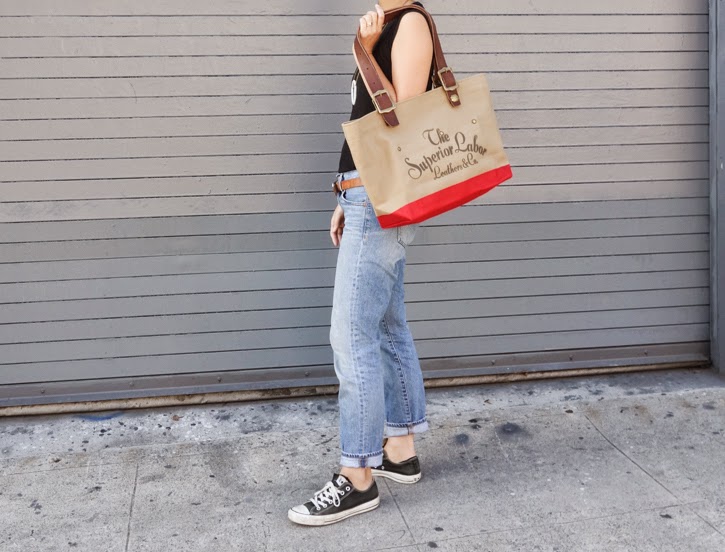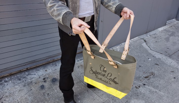 You know we received some new Superior Labor bags last week... I took a lot of pictures in the studio but it was just lacking the last bit of life the bags totally deserved so I asked Frido to come in the studio on Friday to take pictures with some of the bags. Here are some of my favorites. I was absolutely totally awkward in some of the photos that are forever going to stay only on my laptop. I am much happier just hugging the bags (above picture) than pretending to walk with the bag. Some day... I hope we could bring professional models to be in these photo shoot but for now... we do what we can to make things happen.