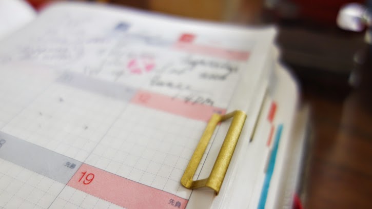 I am using 4 color ballpoint pen to color code my monthly planner page. The brass clip by HIGHTIDE to hold a pen is coming soon to the shop. Please stay tuned:)