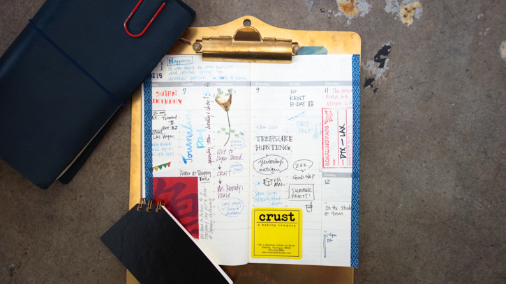 I carry this clipboard between home and studio. It's heavy so I am not sure if I recommend anyone else to do it but I LOVE using it with my weekly calendar when I am at work or at home thinking of the week. It keeps my TN refill open (and flat!) so it's always accessible on my desk. I know it's a small detail but sometimes those little things is what make the system work:)