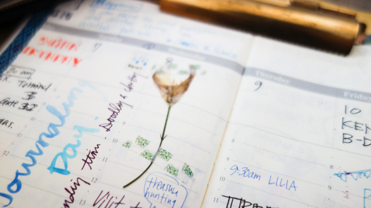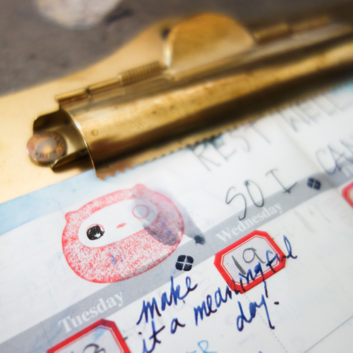 Because monthly calendar is limited in space and dedicated for future planning, I do my big picture thinking every Sunday night for the following week using my Weekly Vertical Calendar. I enjoy using the open dated version instead of pre-dated one because it has more empty space to use... less noise. I add notes, thoughts and memorandum as the week develops. If I ever look back, the spread of each week helps me to reflect on the mood of the time. I don't do it as an art journal but more to organize my brain during the week. The combination of the monthly calendar and the weekly calendar has been really helpful to stay in tune with my time, resources... and myself.