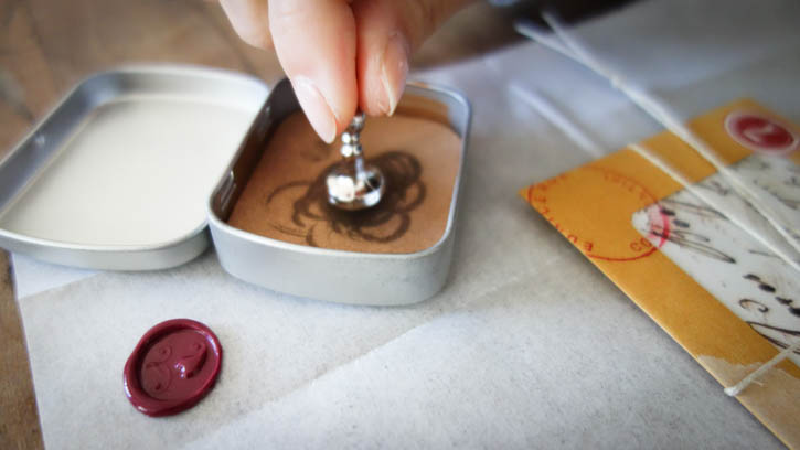 + Modern day wax composed of a bees wax mixture can be safely sent via snail-mail without issues as long as your wax seal is not very thick. However, just to be on the safe side it is recommended that you write or stamp “non-machinable” on the envelope and ask your post officer to “hand cancel” the postage. It will cost you a few cents more to send it this way but will protect your mail art from getting damaged.