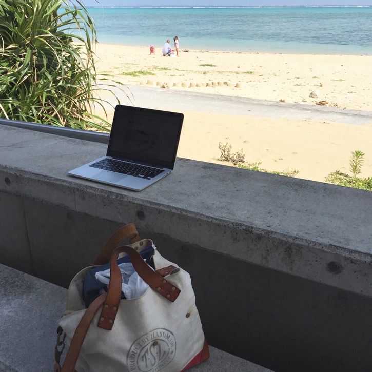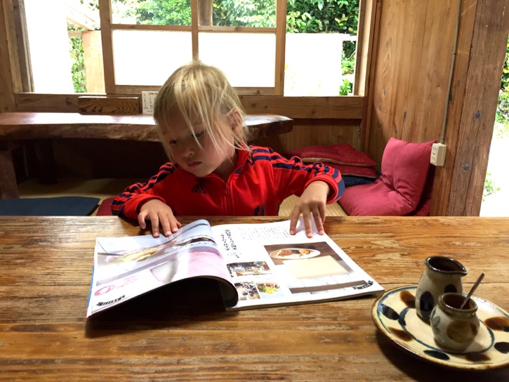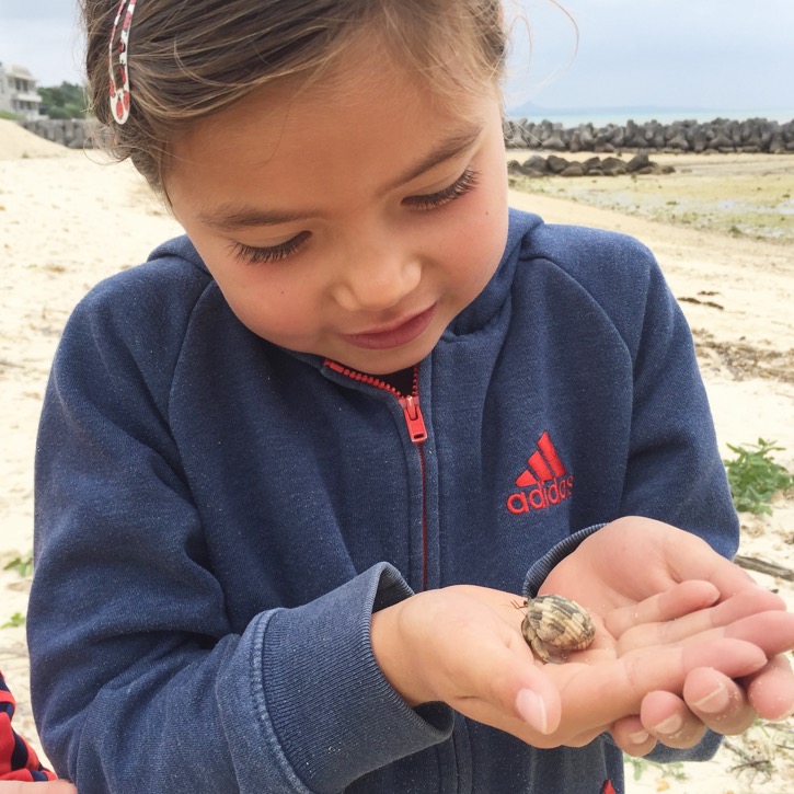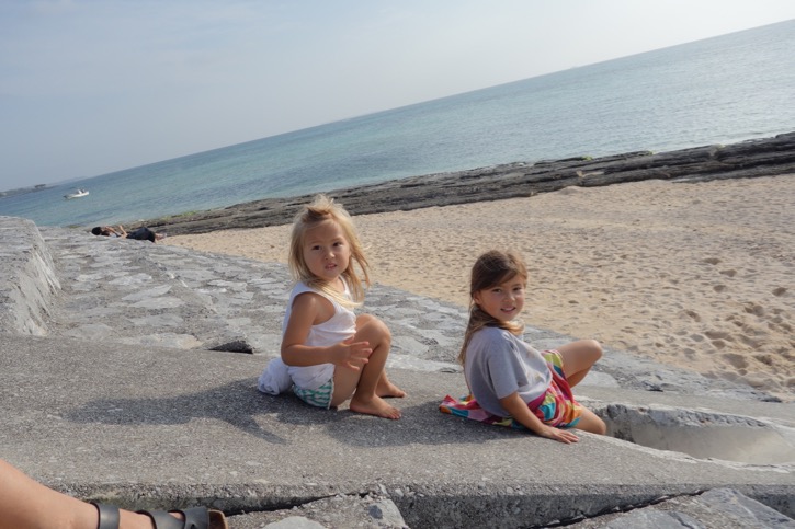 When we arrived at Okinawa, it took us for a few days to shake off the everyday routine of our LA life. Not having constant wifi at our first Airbnb home definitely threw things off a bit but we quickly came to realize how amazing it felt "not" to be able to check our inboxes every night after girls went to bed (which had become our daily routine for so many years since we became parents). Surprisingly (to me) that I still got what I needed to get done for Baum-kuchen as effectively as I could at a nearby beach cafe while Frido and girls collected beach treasures... and I realized that perhaps I wouldn't need to be working in the evenings??