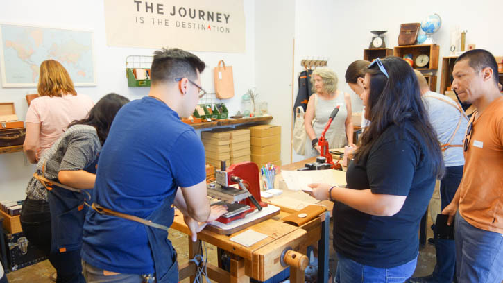 Added (and huge) bonus: Diana and Wes of 1.61 Soft Goods offered to emboss our logo marks and favorite inspirational quotes on everyone's Traveler's Notebook as well as other selected leather items using the embossing machine they use in their workshop!