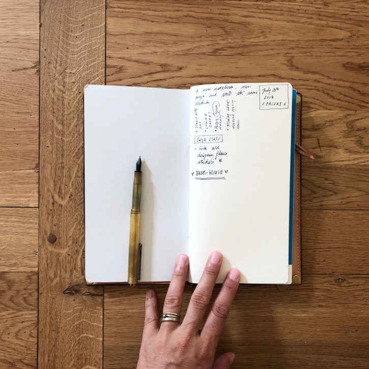 I finished my first travel refill and moved into the 2nd one. I'm using BK Sketch Notebook and loving it! Ame has recommended Global Arts Papers to be outstanding mixed-media papers and she was totally right. The pages have the mat tactility with just enough texture, and it works so well with fountain pens and watercolor paint. I also really appreciate the notebook cover Frido designed for this refill. We wanted to create an open-ended feel where the blank notebook does not intimidate anyone to start using... so all the design elements on the cover are hand drawn and written by Frido using his favorite mechanical pencil from Modern Fuel.