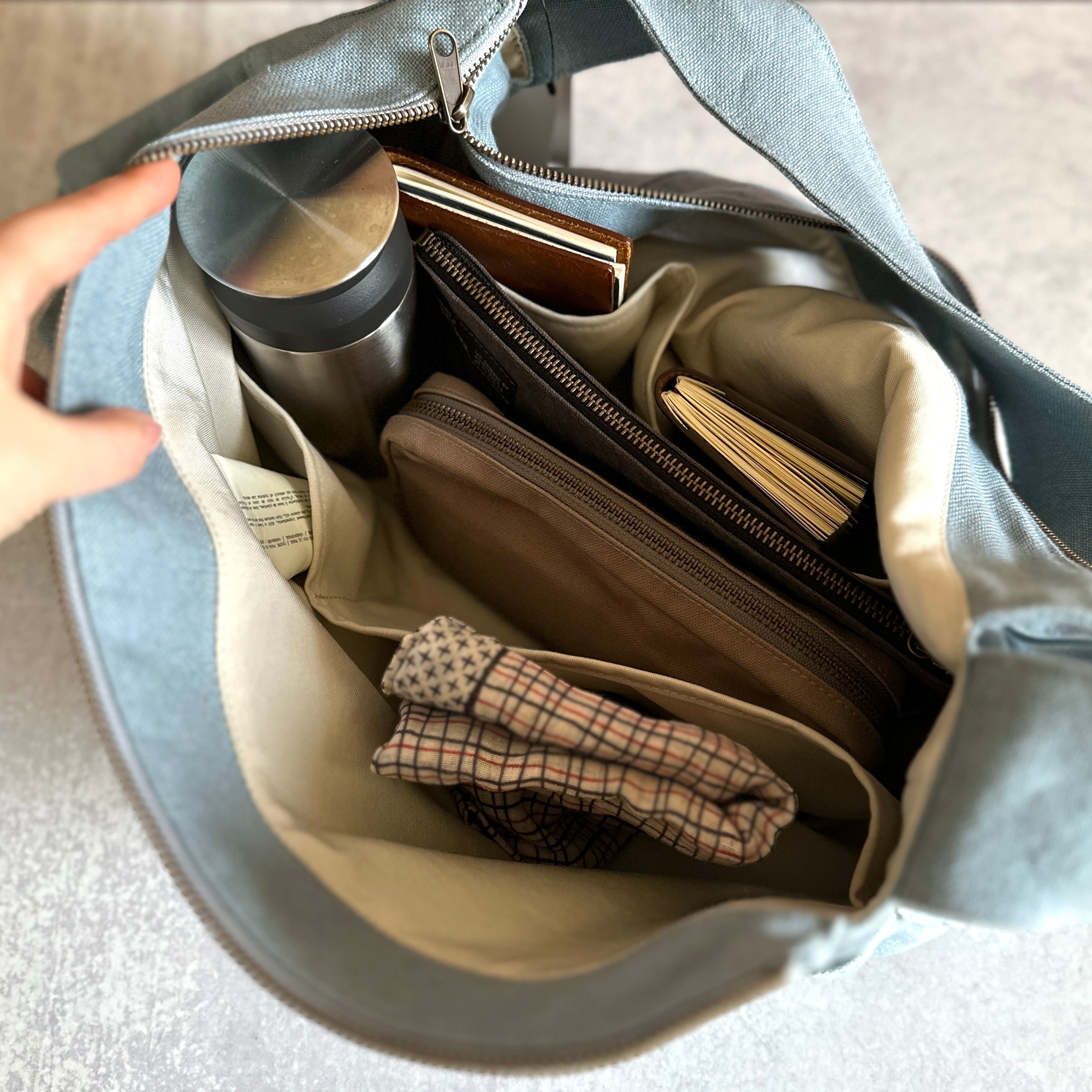 Carry the artifacts you love in a bag that feels like a hug! The fabric is crafted from a special linen woven in Kurashiki Japan, and is large enough to hold all your daily essentials and more. Perfect for overnight getaways or leisurely days in the city, its soft, cozy texture naturally wraps around you while keeping your belongings secure with a zipper closure and a wide, comfortable strap.