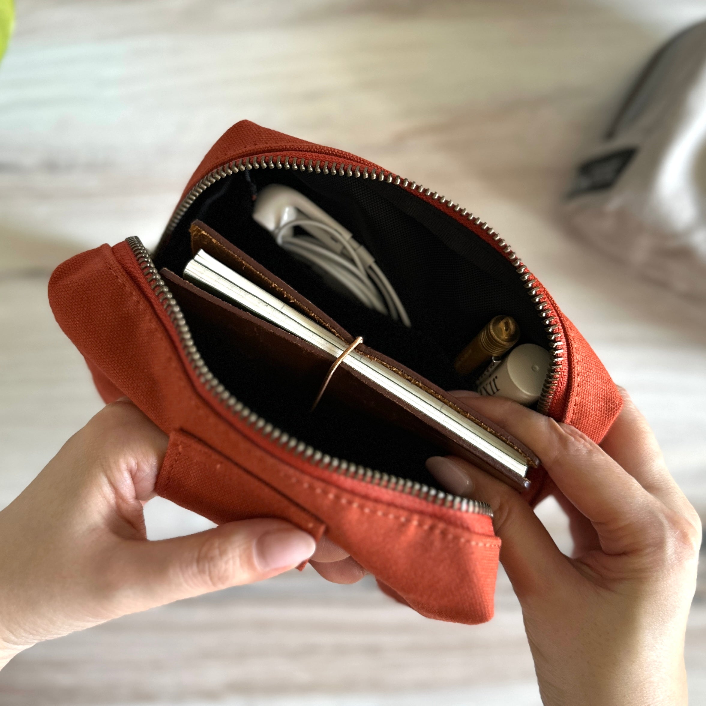 We love that this pouch is able to hold notebooks such as Traveler's Notebook Passport, and MD A7!