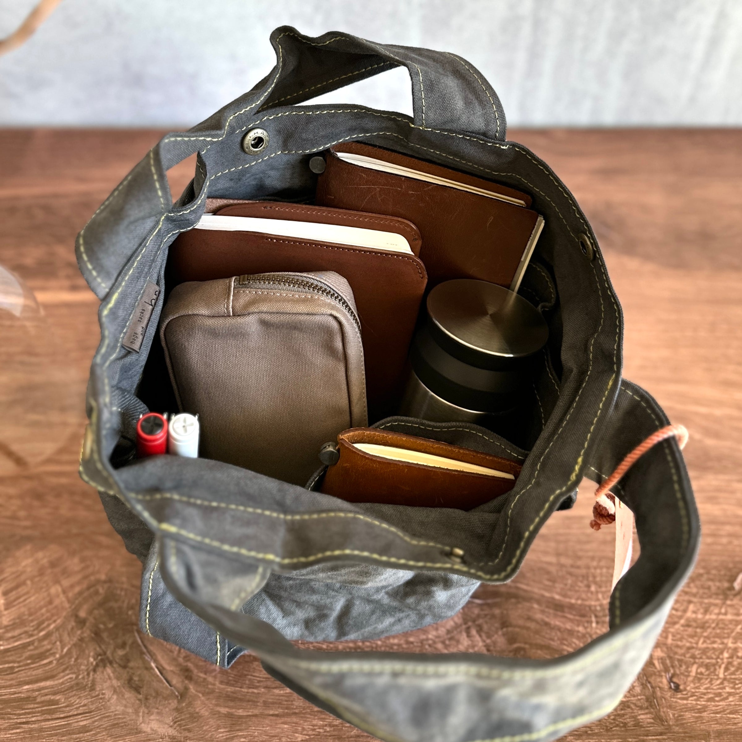 This bag was inspired by the strength and durability of Flexible Container Bags in Japan, which are used to transport hefty materials. The Furecon bag reimagines this function through a softer lens, making it an ideal companion for everyday adventures. A continuous strap forms a beautiful figure-eight design that runs from the handle to the base, evenly distributing the weight of the artifacts you place inside the bag. Inside features many thoughtful pockets to keep smaller items and all your odds and ends organized! We hope you enjoy this beautiful companion, whether you take it near or far!