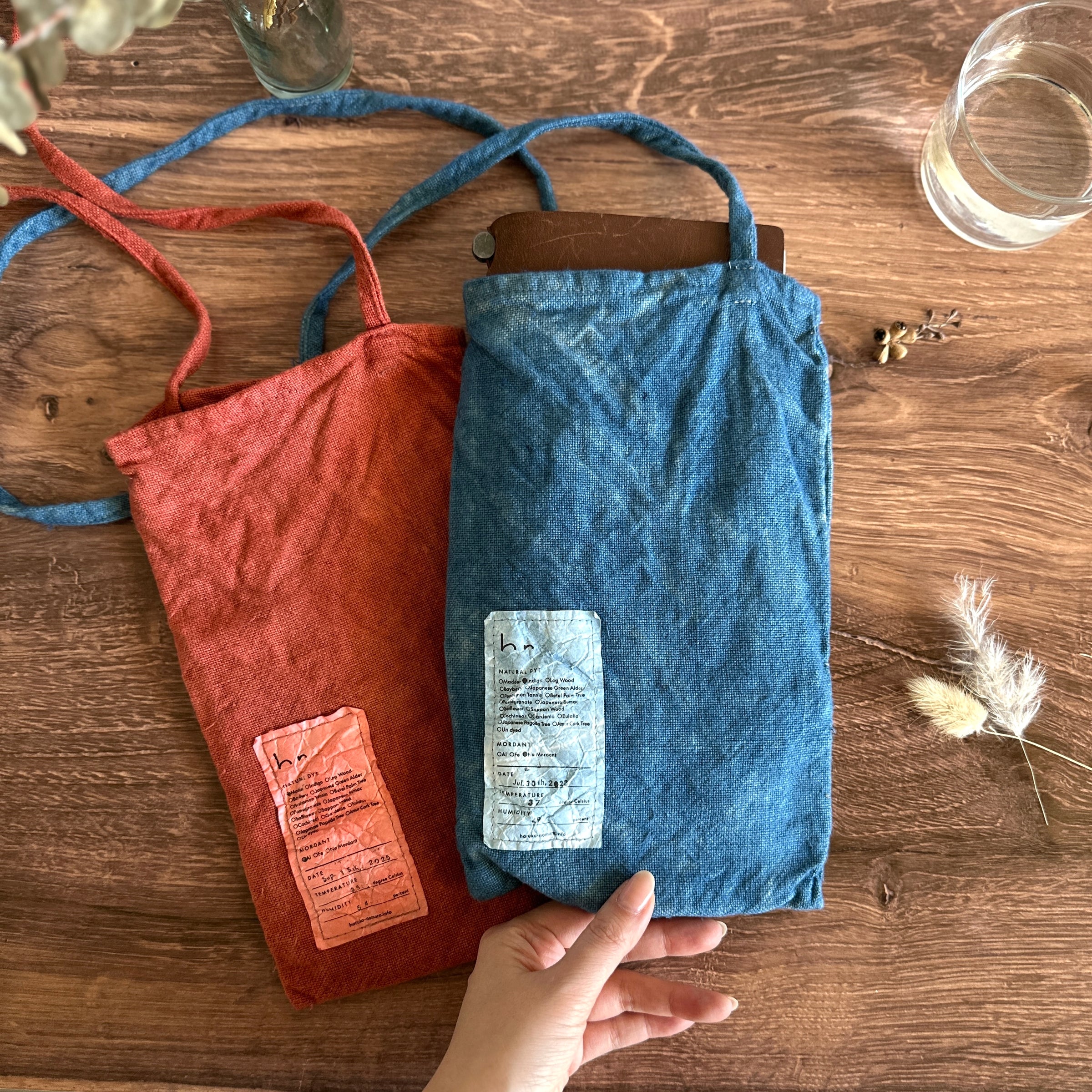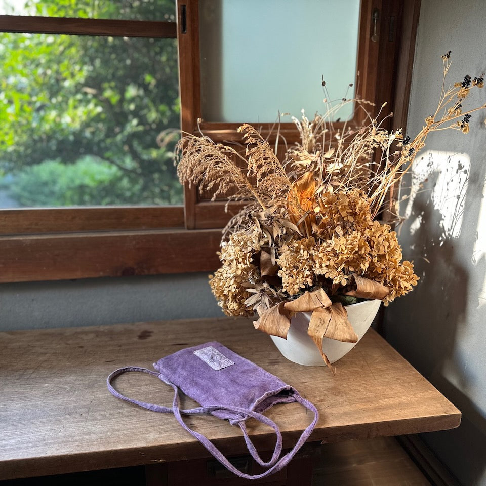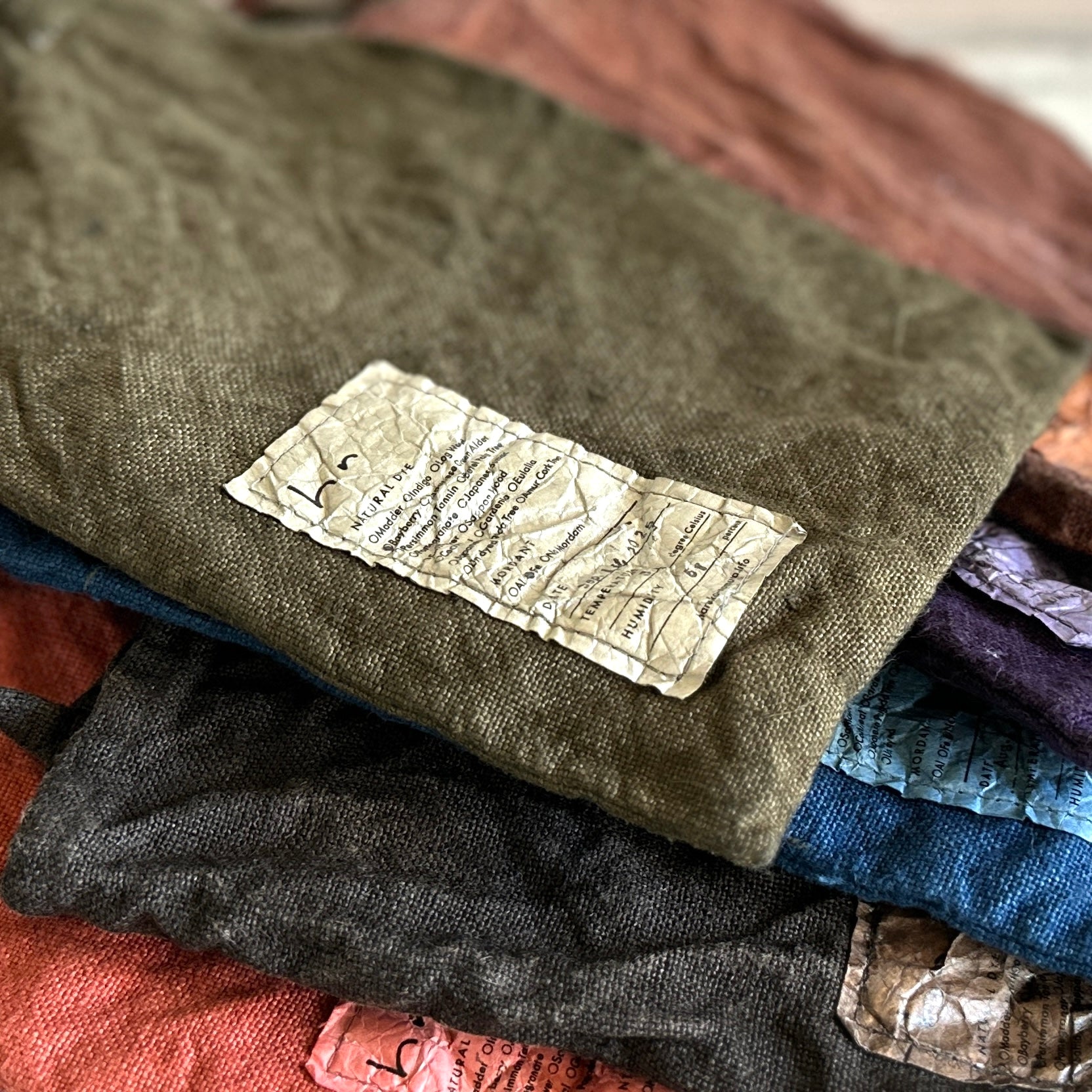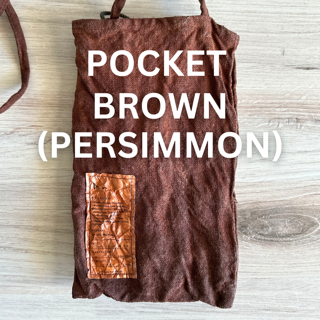 Brown & ink: Persimmon (When the bag is new, these colors have a very stiff / firm texture due to the reinforcing effect of persimmon tannins. Over time and use, it will become soft and shiny).