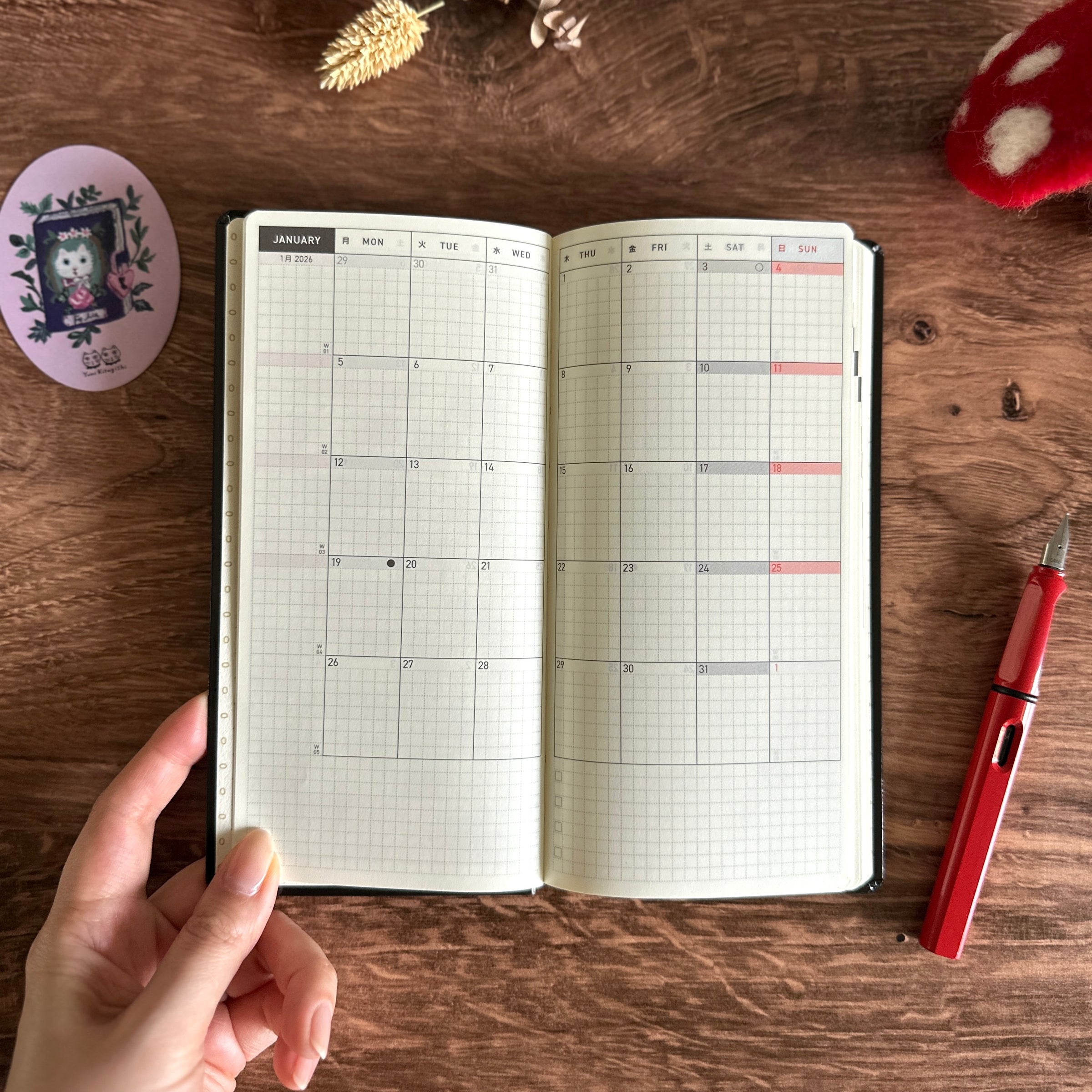 The Hobonichi Weeks is not just an agenda to plan out your days but can be enjoyed to document your memories, take notes, or jot down thoughts as they come up. Write your appointments in the monthly calendars and plan in detail with the weekly + memo section. The additional blank grid pages in the back can be enjoyed to create lists and more! Its compact and slim silhouette allows it to be comfortably held in one hand or slipped into your bag or jacket pocket. This planner is the perfect solution for those who need structure to plan their days in a portable format!