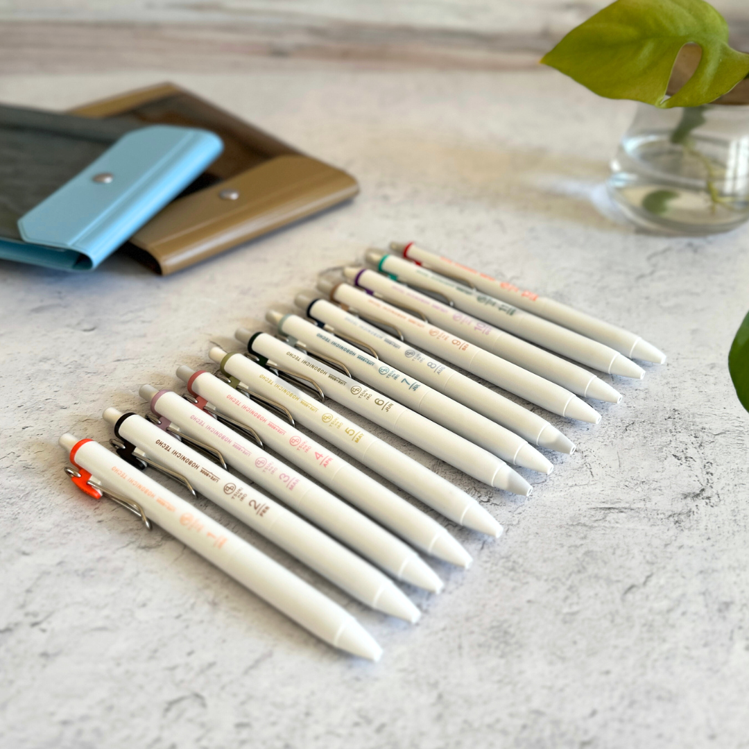 Enjoy documenting your year colorfully with these beautiful Uniball One pens! Inspired by the colors of each month of the Hobonichi Techo Original, each set comes in a handy storage case which can also be used to hold your daily analogue tools. We hope the soft and rich hues of these pens will offer inviting moments of calm to your analogue rituals!