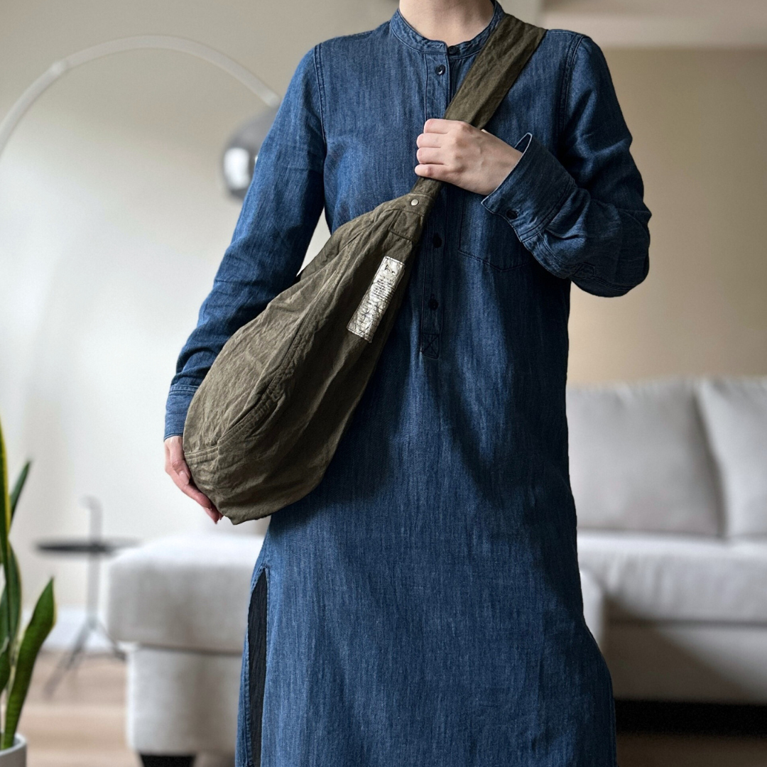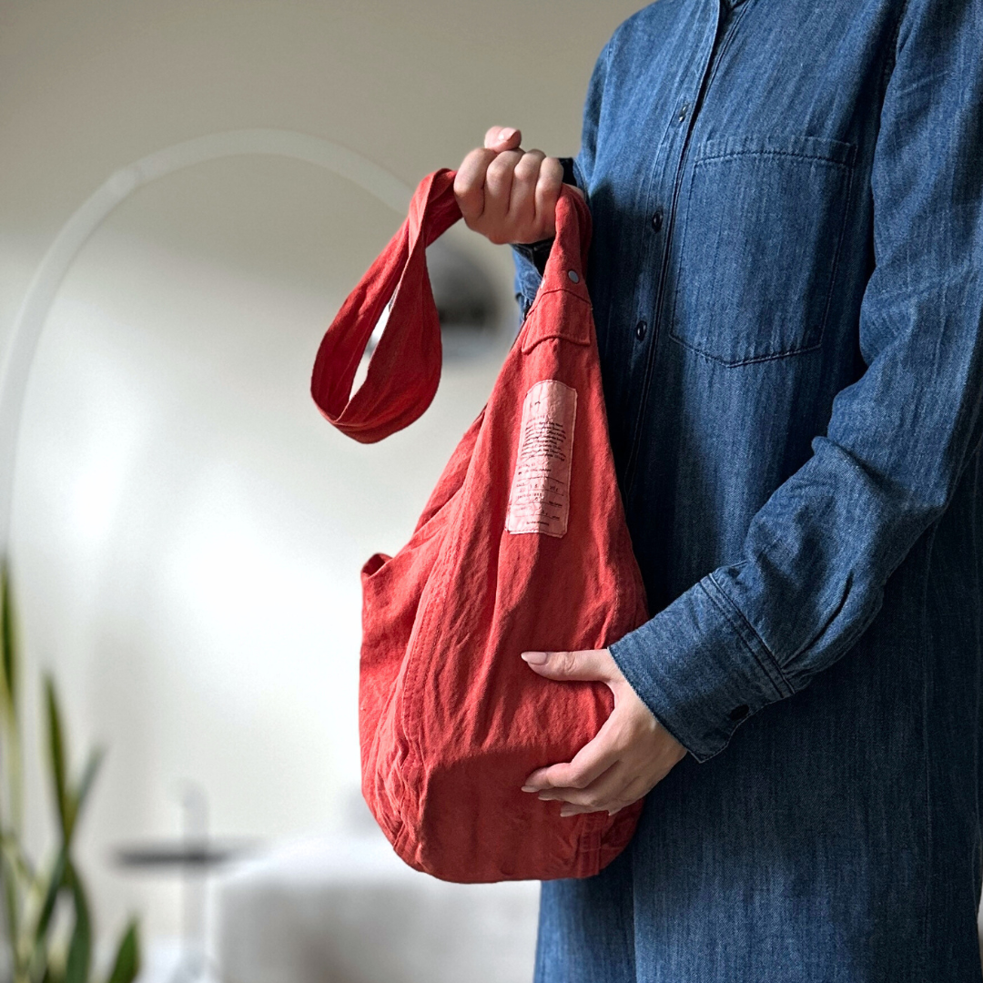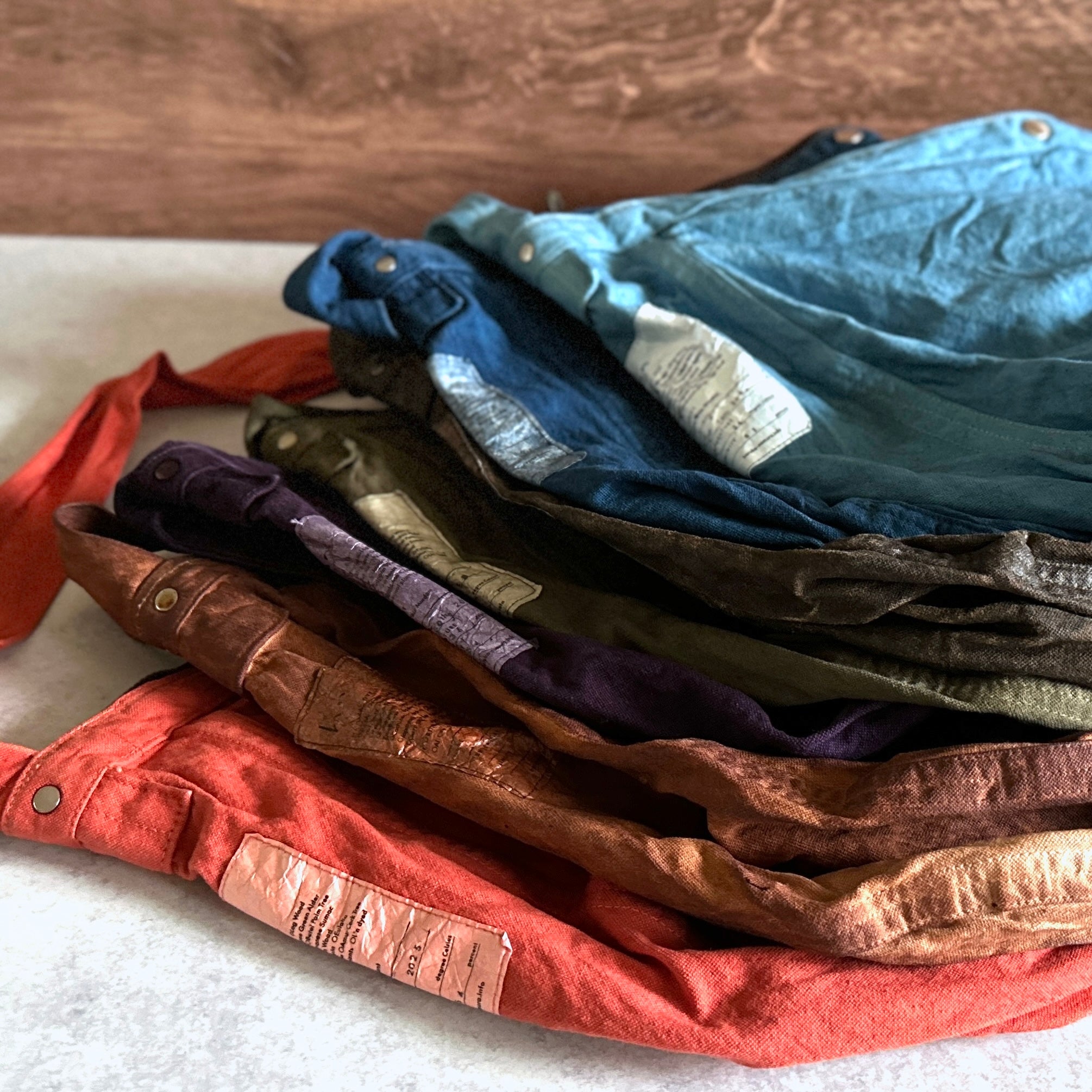 Whether it's for a day out in the city or an overnight trip to your favorite destination, the Record Bag's roomy design lets you carry everything you need. Designed with a soft and relaxed silhouette, it drapes naturally against the body, creating a comforting experience that feels like a hug. Crafted from lightweight linen, it feels airy and effortless as a feather, an ideal companion for both your adventures near and far. A special tag is sewn on every piece, recording the date, temperature, humidity, and plant dye that was used, which celebrates the beauty of the exact moment in time that it was made. The variations in color and texture reflect the uniqueness of every bag. As you carry it through daily life and new adventures, we hope you'll enjoy watching it soften, age, and develop its own patina alongside you!
