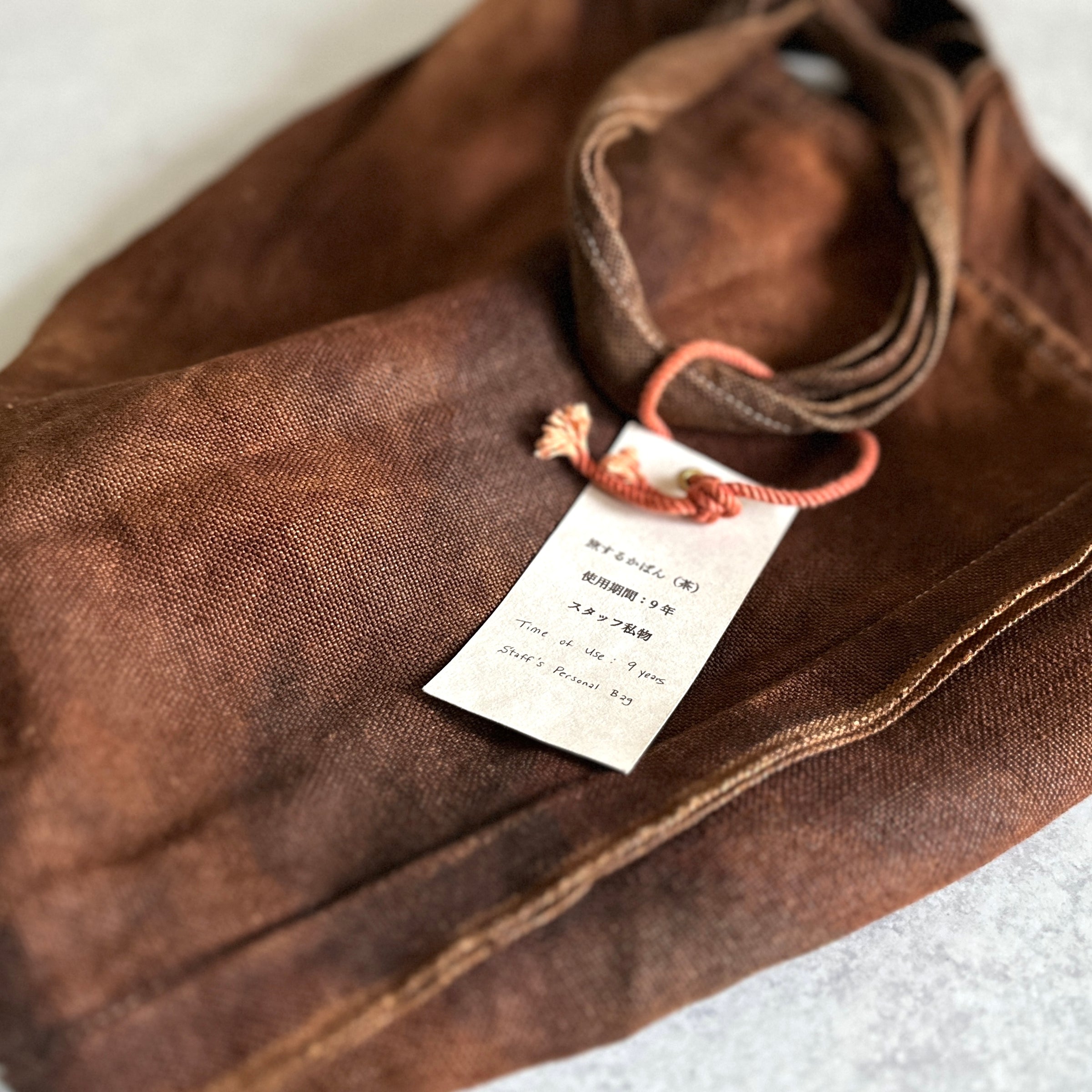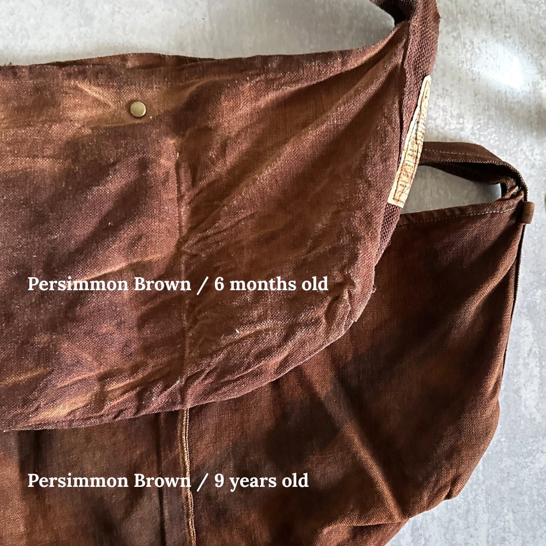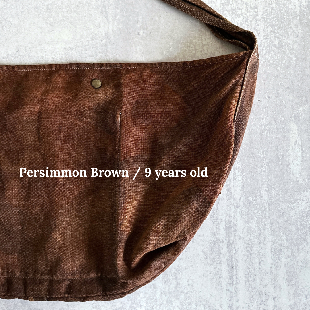 Brown & ink: Persimmon (When the bag is new, these colors have a very crisp/firm texture due to the reinforcing effect of persimmon tannins. Over time and use, it will become soft and shiny).
