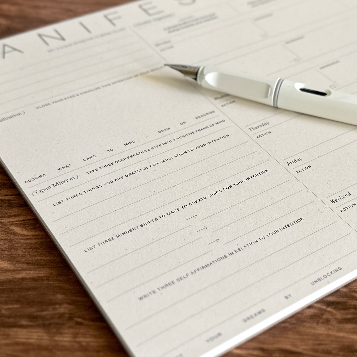 Manifestation Pad by Wilde House Paper can take your practice to the next level by supporting you in articulating where you want to be, internal shifts that need to happen to make the intention come alive, and most importantly, why it's important to you. The daily note-taking space is there to microalign your actions into smaller steps, bringing the manifestation a little closer to reality.