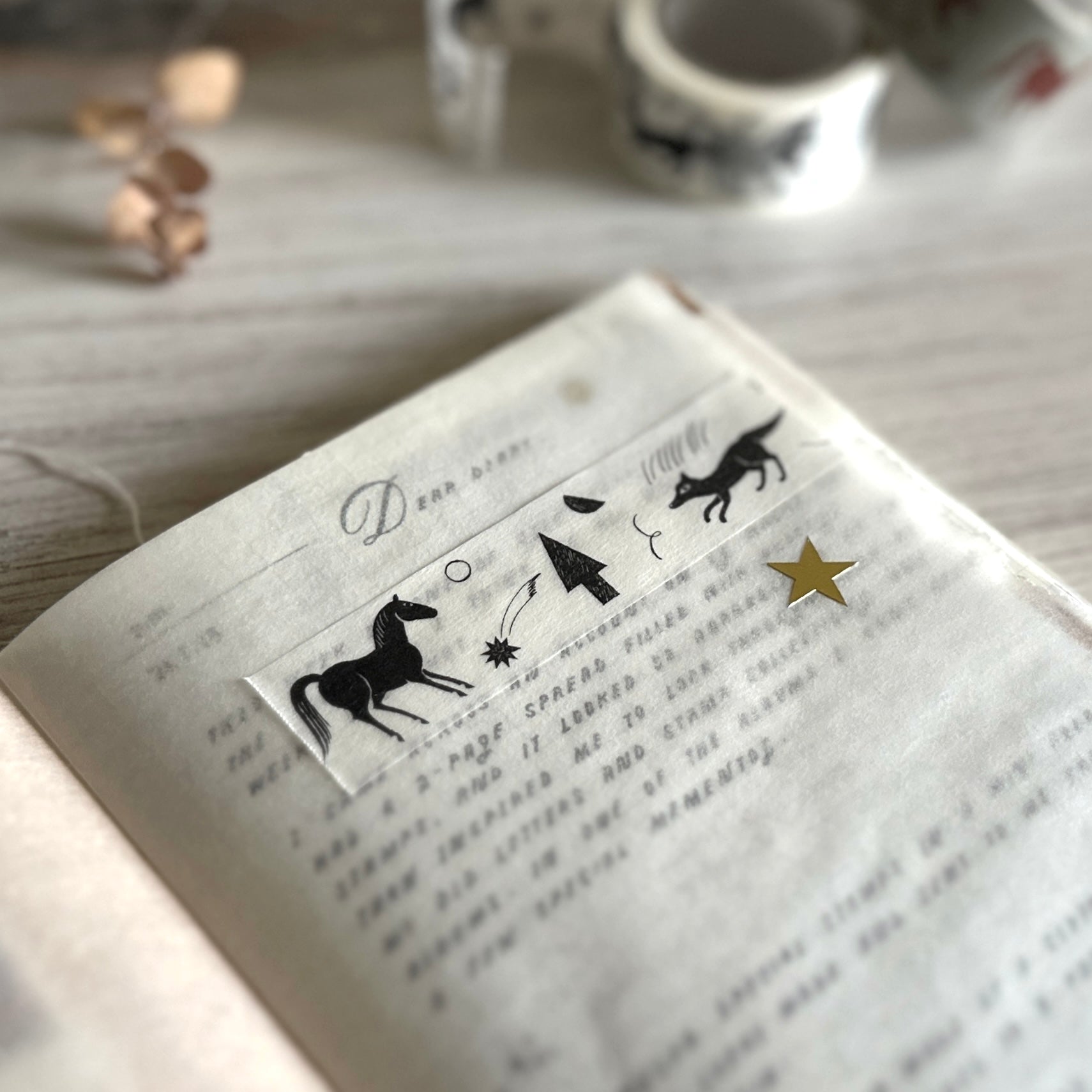 Add a beautiful accent of these whimsical animals in a night scene illustrated by Nishi Shuku in collaboration with Mizushima. The classic and calm colors will add a delightful touch to your journal pages, letters, and more!