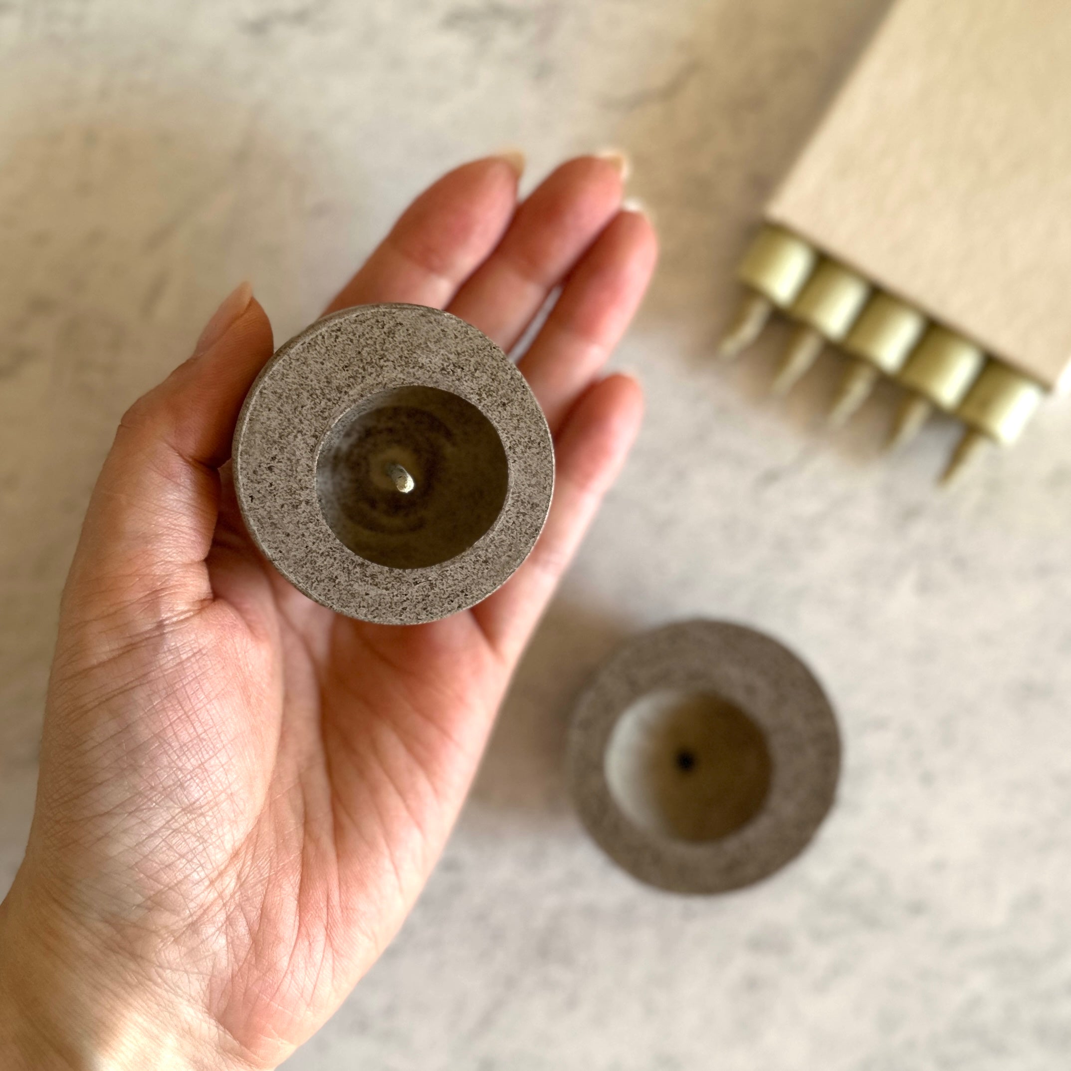 The candle stand "Kodama" was designed with an image of a "Hanabi-dama", an ingredient that makes fireworks spark in the sky with illumination and sound. The bottom part can be used as a candle holder, and the top part can be used to hold incense.