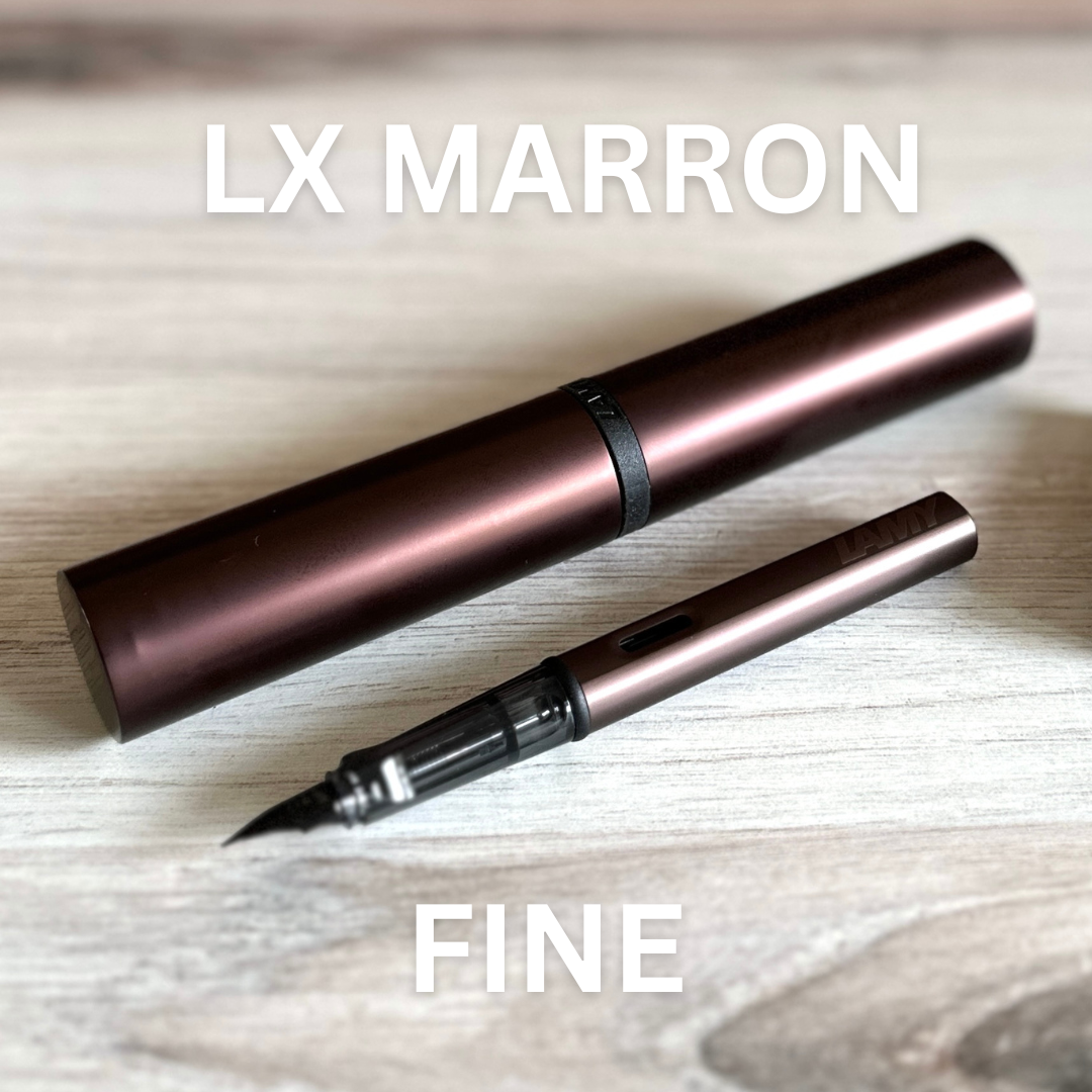 Enjoy a delightful writing experience each time you reach for the LAMY Lx (Luxe) fountain pen, whether composing thoughts, sketching, or drifting into a brainstorming session. Its striking body is crafted from a beautiful brown double-anodized aluminum and paired with a matching case. The barrel reflects a grounding glow, accompanying each line you place on the page.