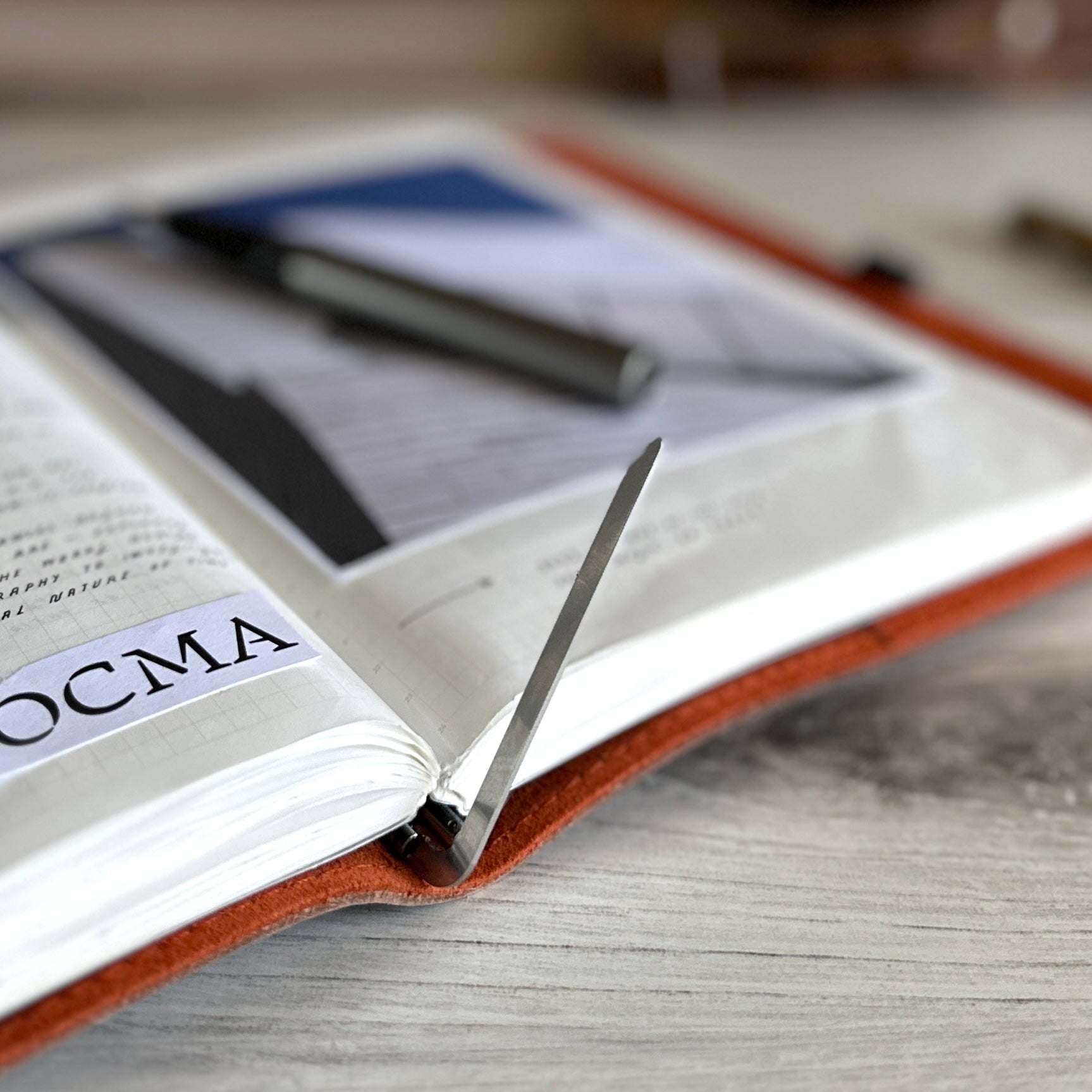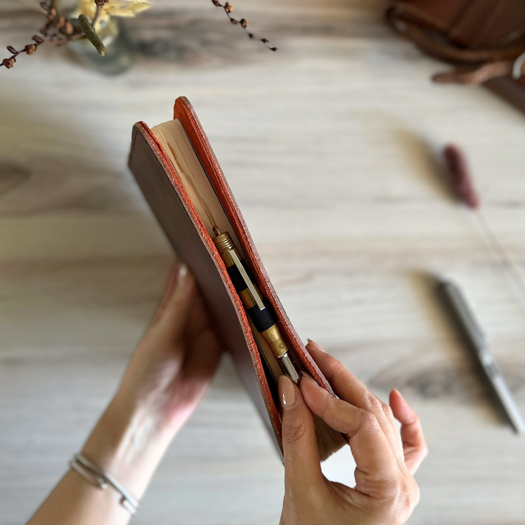Equipped with Roterfaden’s signature clip system, the beautifully slim WK_24 holds just the notebook you need with a little extra room. The flexible clips allow you to easily swap out what you need with a simple flip, making it effortless to change things up as your days evolve. Inside, a warm russet orange suede interior adds a playful contrast while offering a soft, tactile experience. Thoughtfully placed pockets keep smaller artifacts organized, creating one streamlined companion for journaling, planning, and everyday ideas!