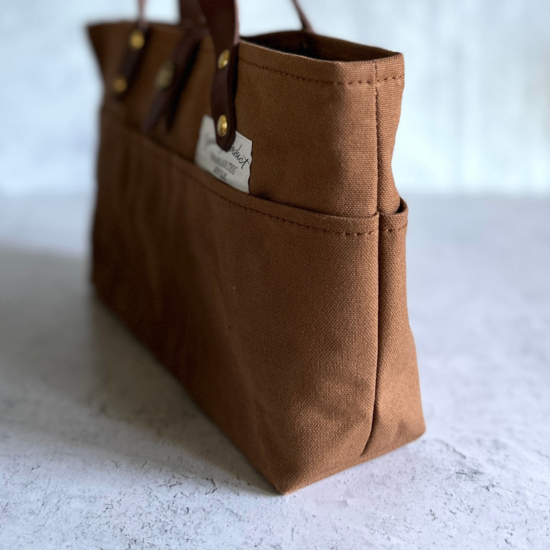 Carry your beloved analogue artifacts in this versatile mini tote! The outer pockets offer a variety of sections making it perfect for pens, pocket notebooks, and other small essentials so everything is easy to grab at a moment’s notice. Inside, you’ll find a spacious compartment to hold larger items like your favorite notebook. Made with sturdy paraffin canvas, this tote keeps its shape beautifully as it accompanies you from your desk to your favorite coffee shop.