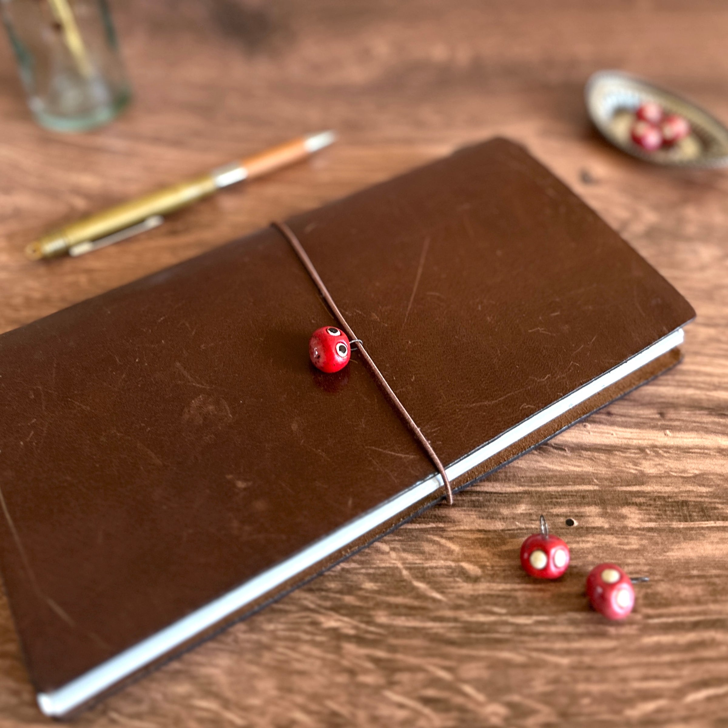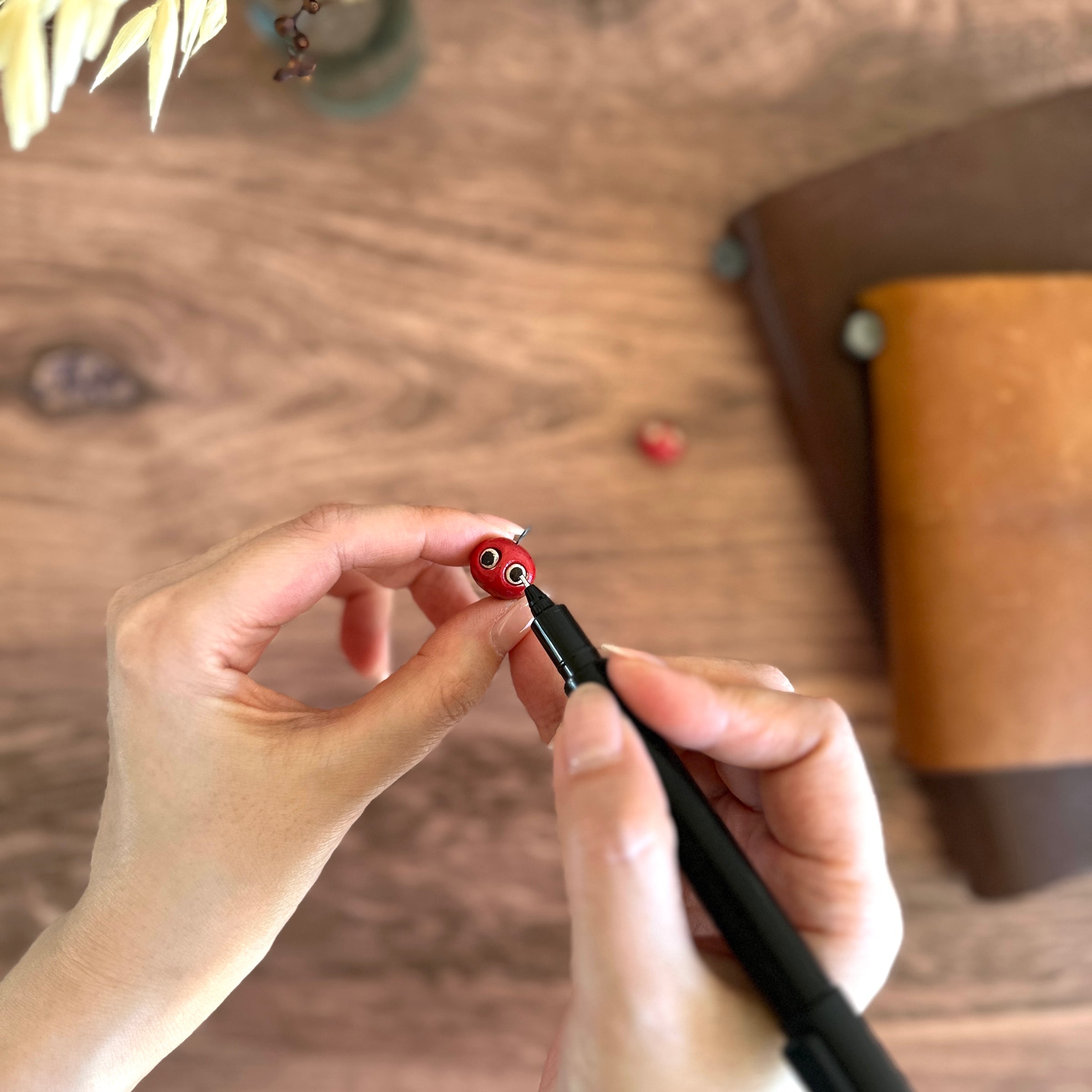 The inspiration for this charm comes from the Japanese artifact Daruma, a symbol of perseverance and good luck that has been traditionally used for intention setting in Japan. The Daruma charm comes with unglazed blank eyes. Fill one of his eyes (Sharpies work well) when you set your goal, and fill the other eye to make him complete when you accomplish it. Keeping this Daruma charm on your Traveler's Notebook will be a gentle reminder of your personal intention every day.