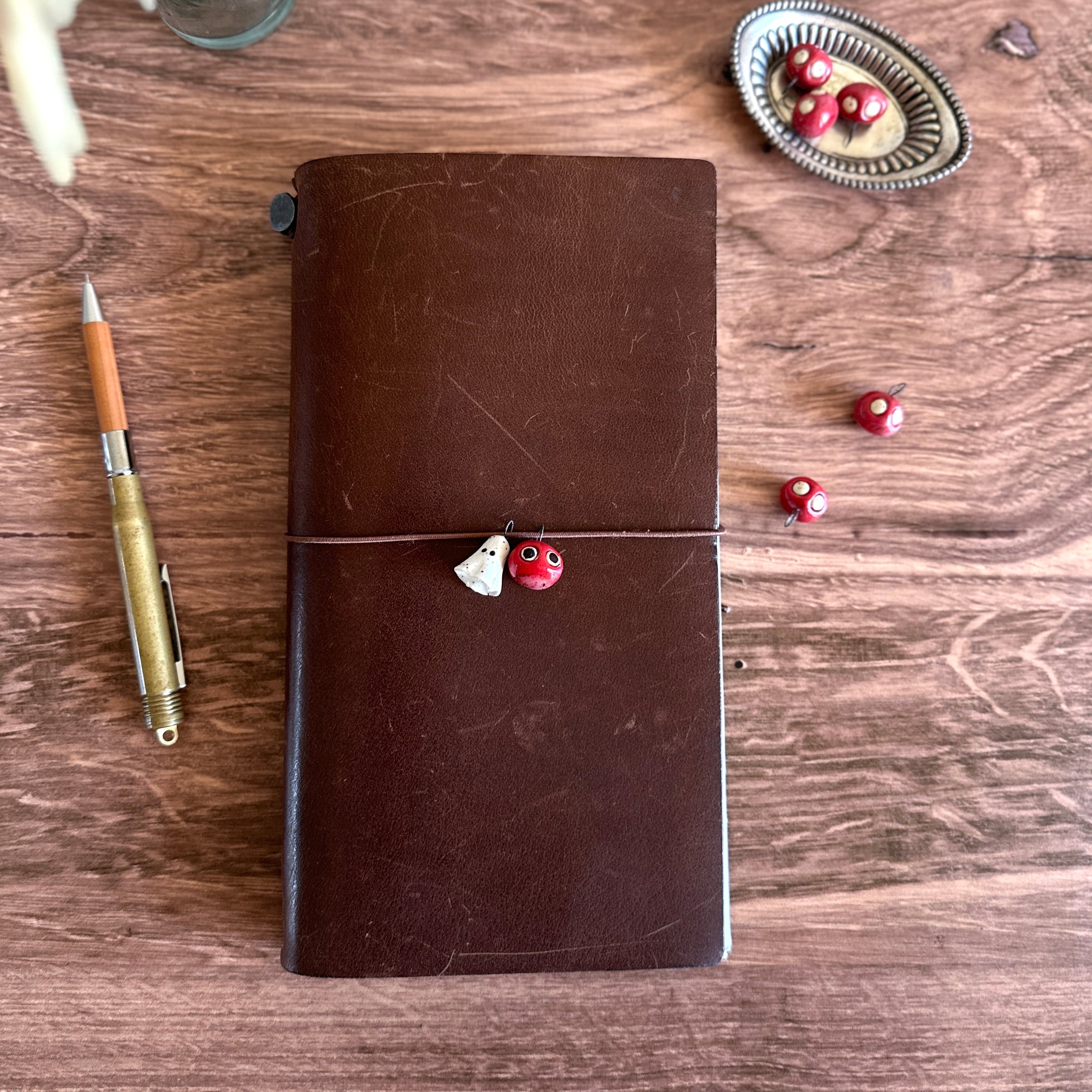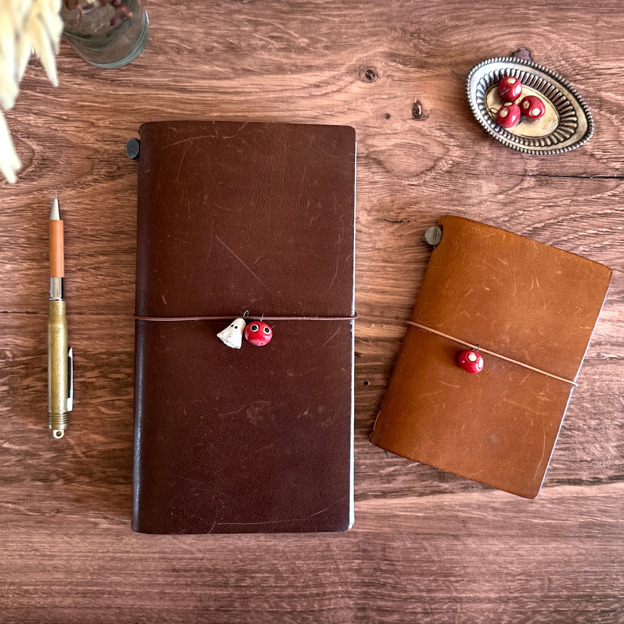 You can add these charms to the elastic band of your Traveler's Notebook or attach them to the bookmark string. Their whimsical personalities are sure to bring a smile to your face.