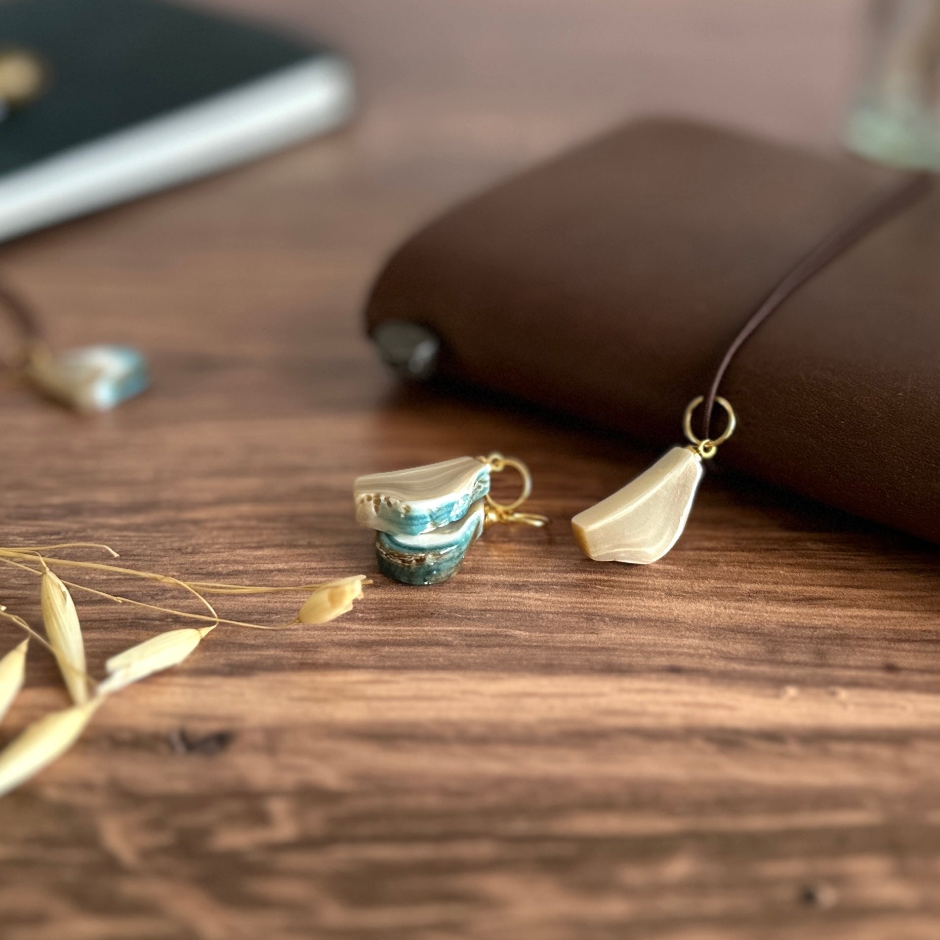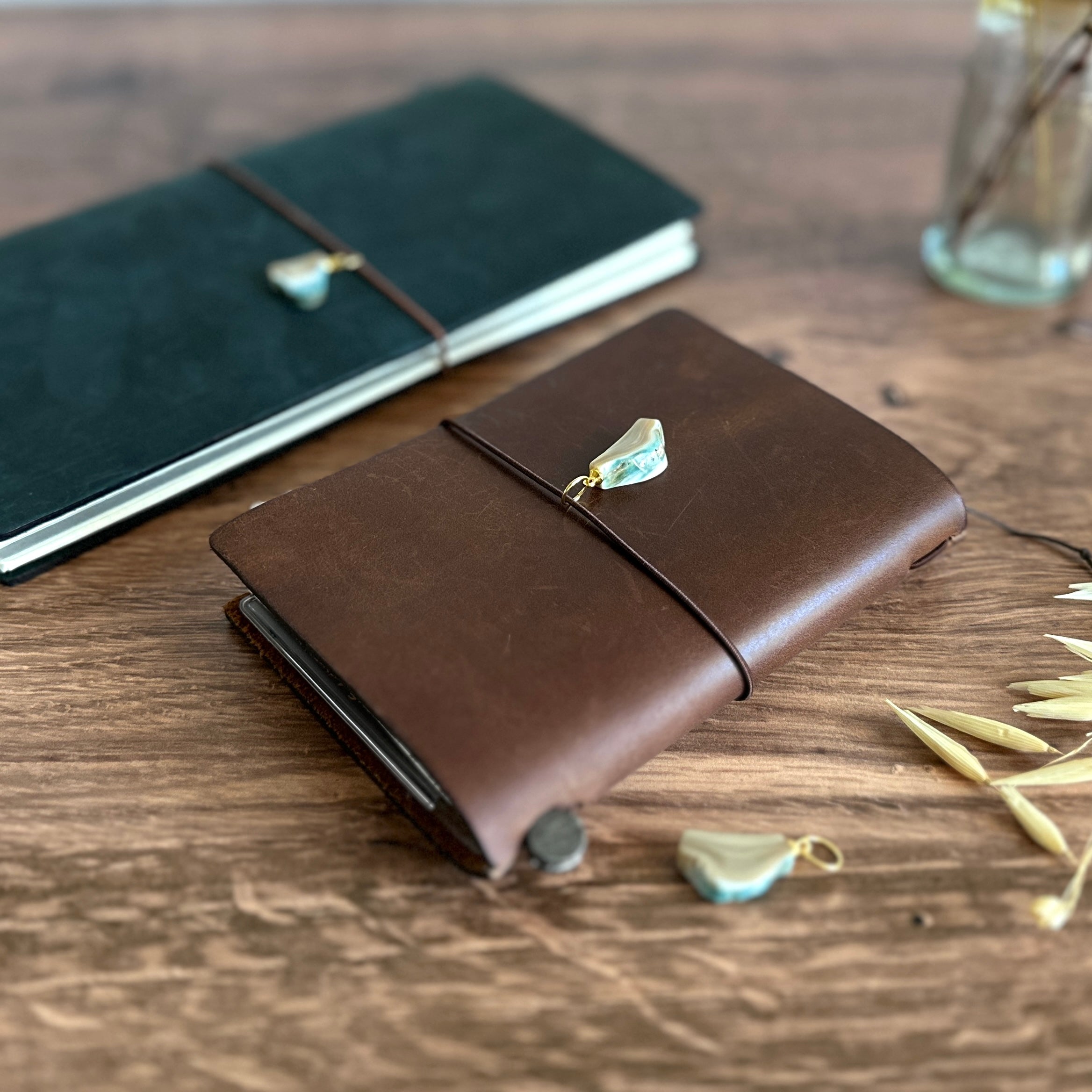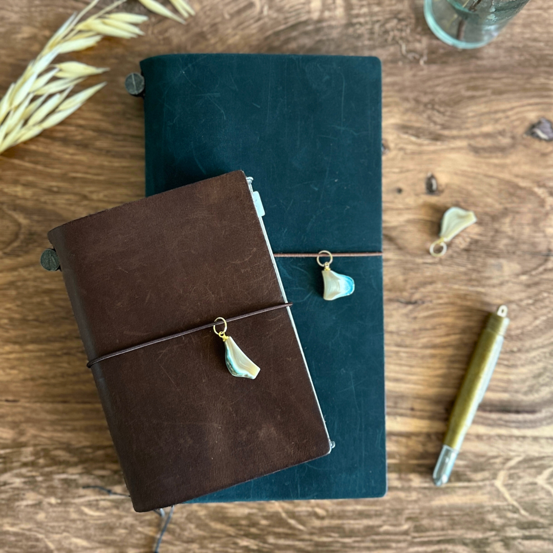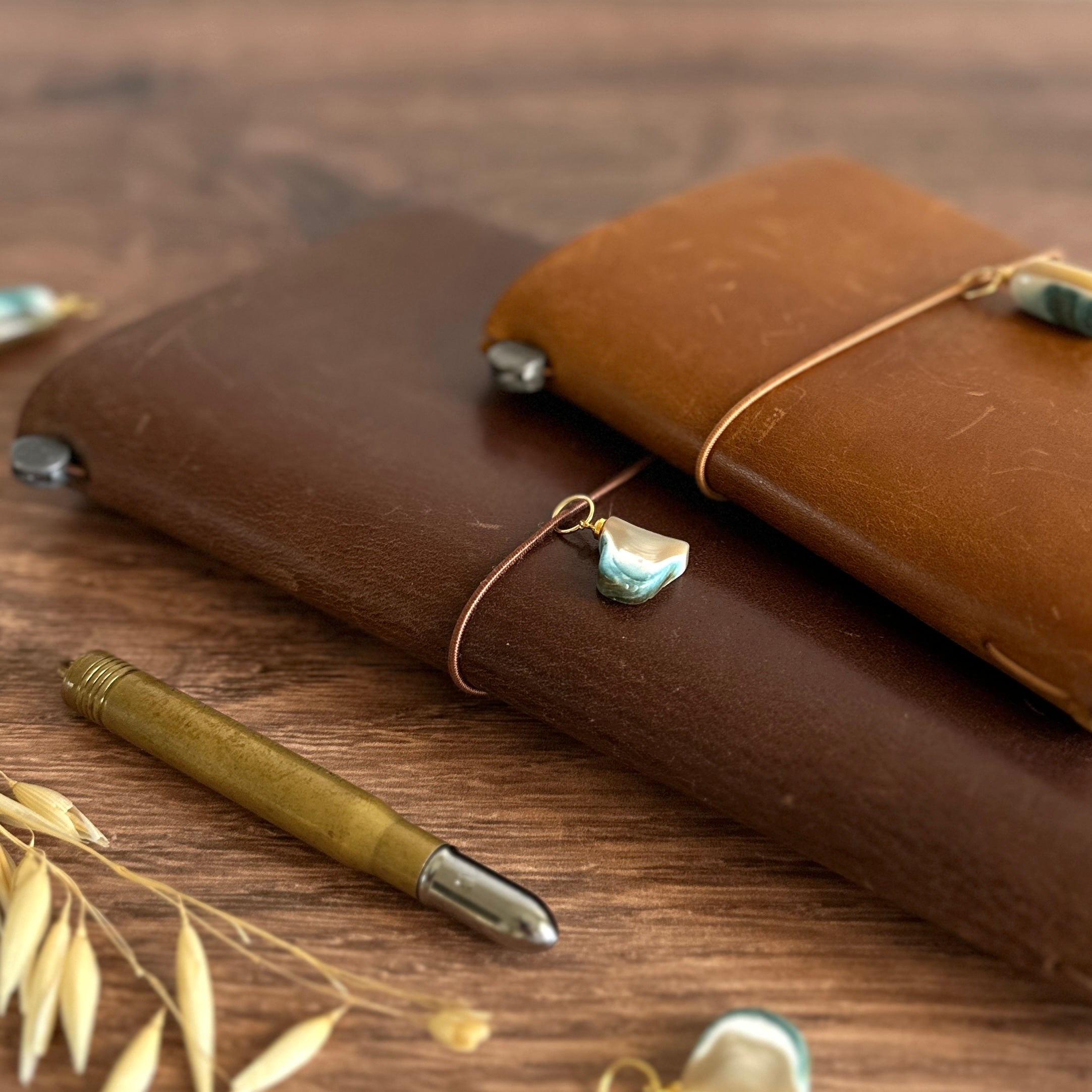 The charm can be used as an accessory for the Traveler's Notebook or threaded with a string or a chain and worn as a necklace.