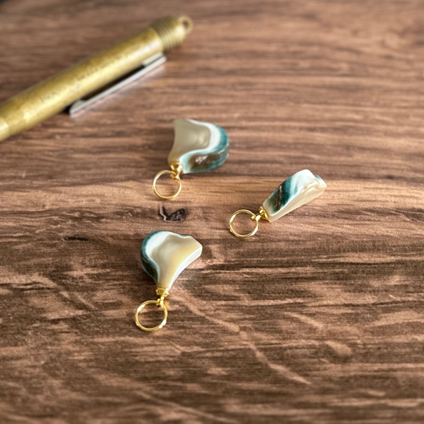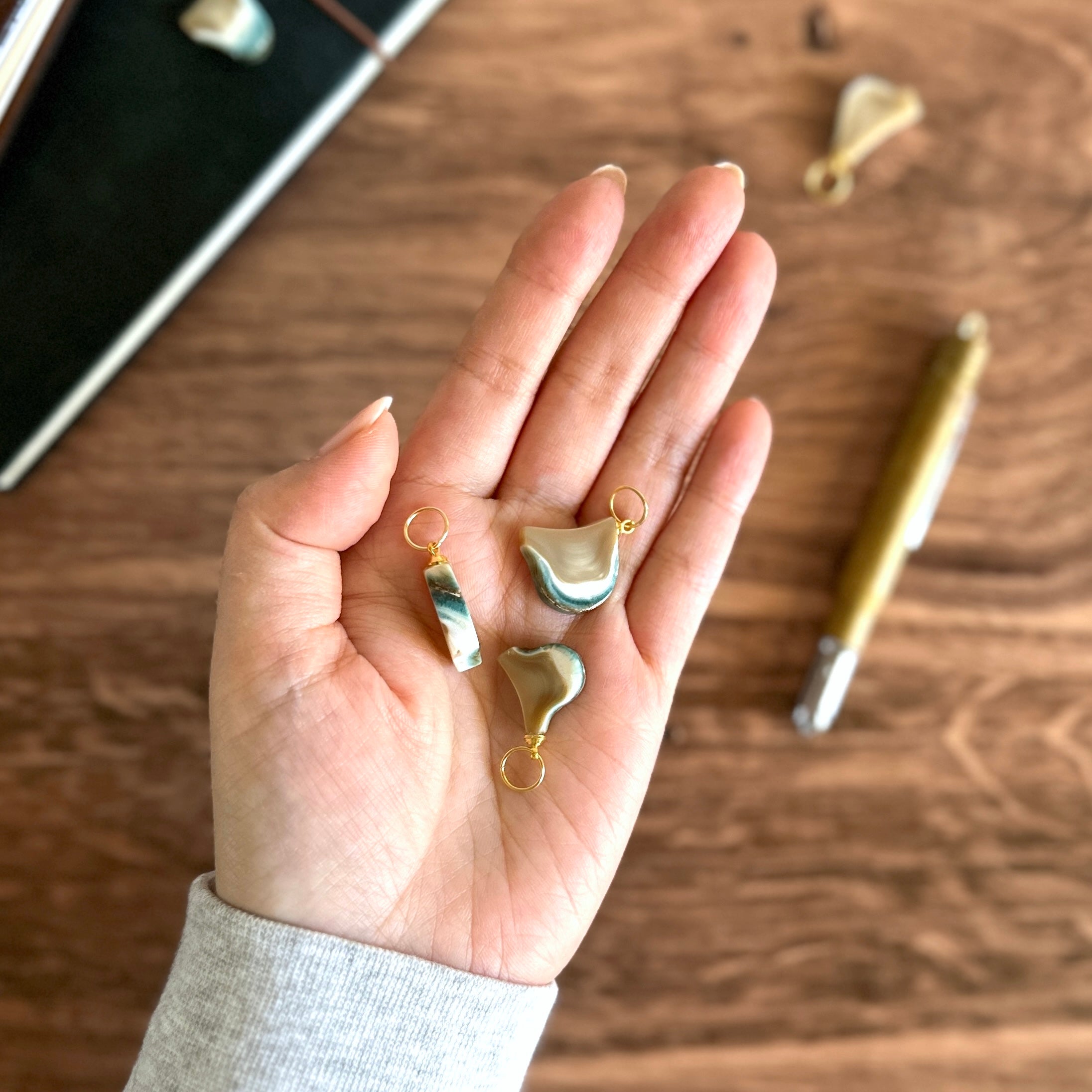 This stunning charm is crafted from a luminous shell called the Great Green Turban. The shell shines from within, making the creative process a beautiful collaboration between an artist and the unique material.