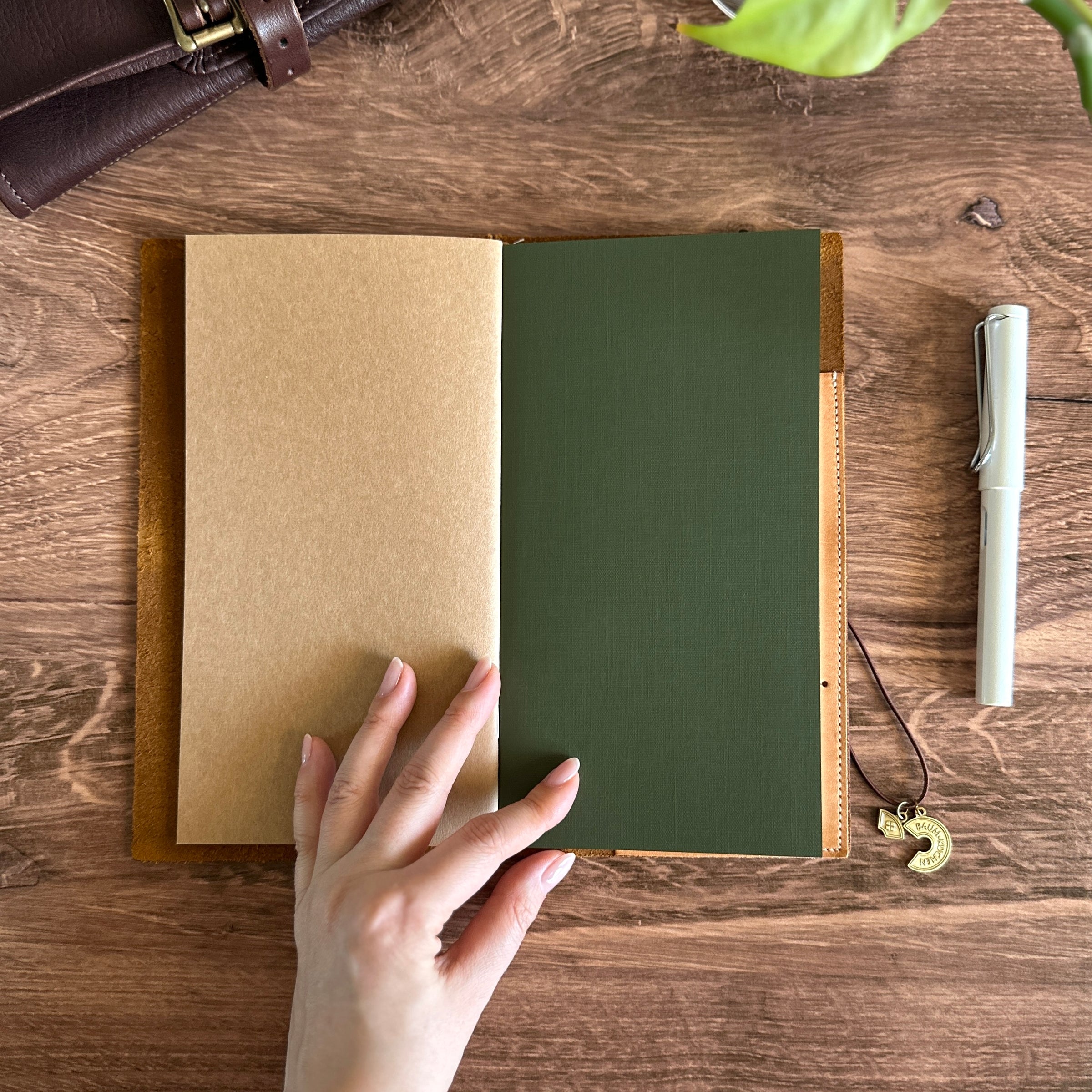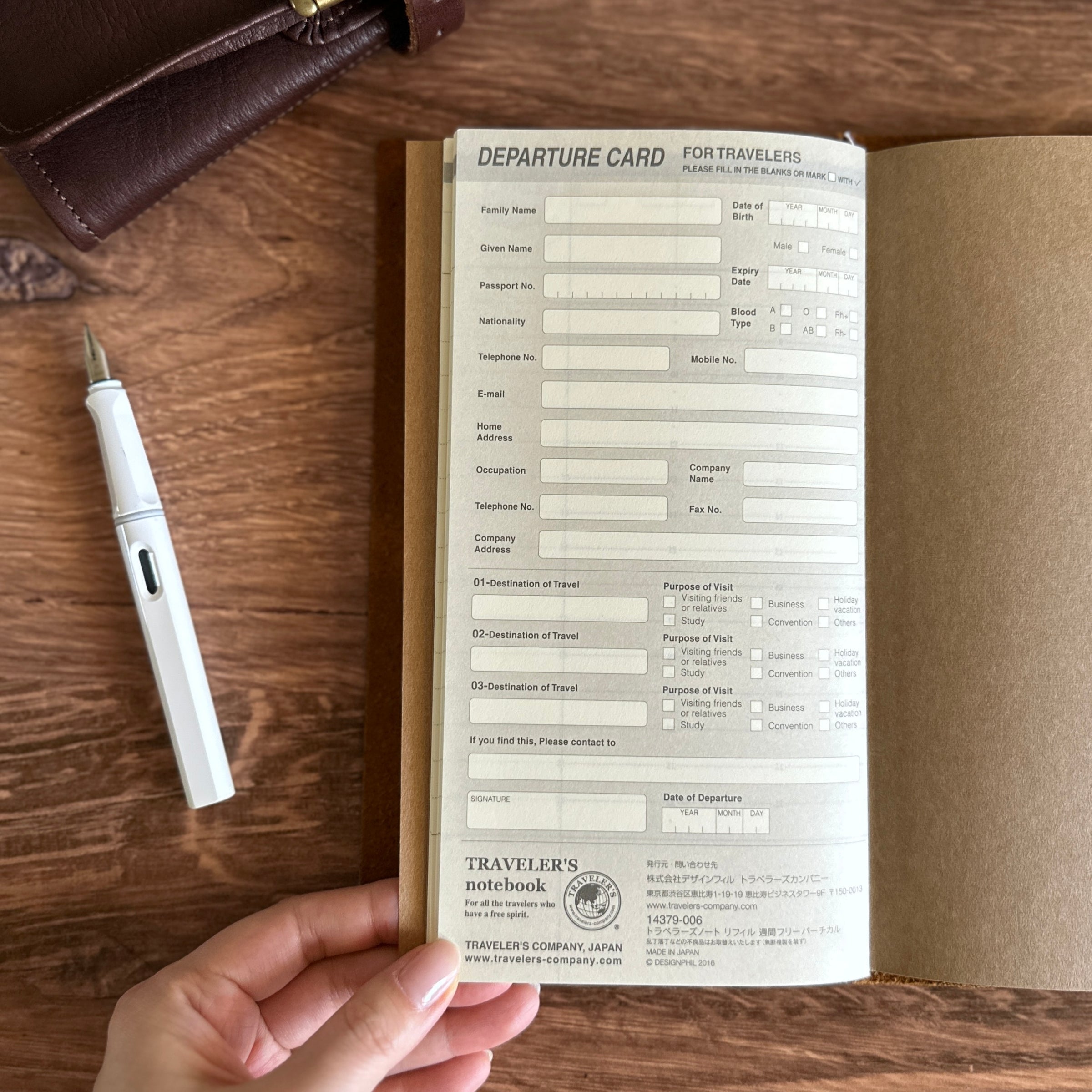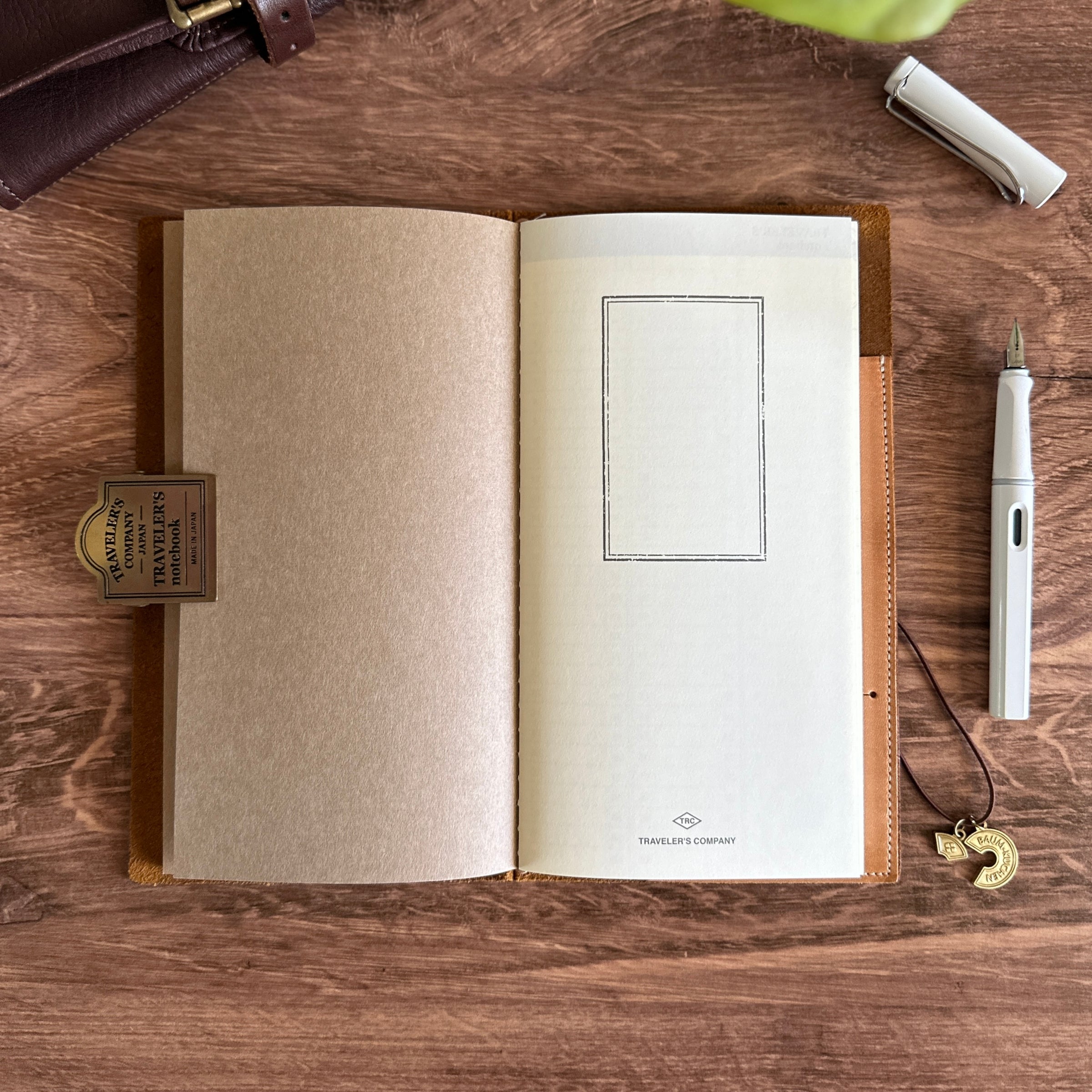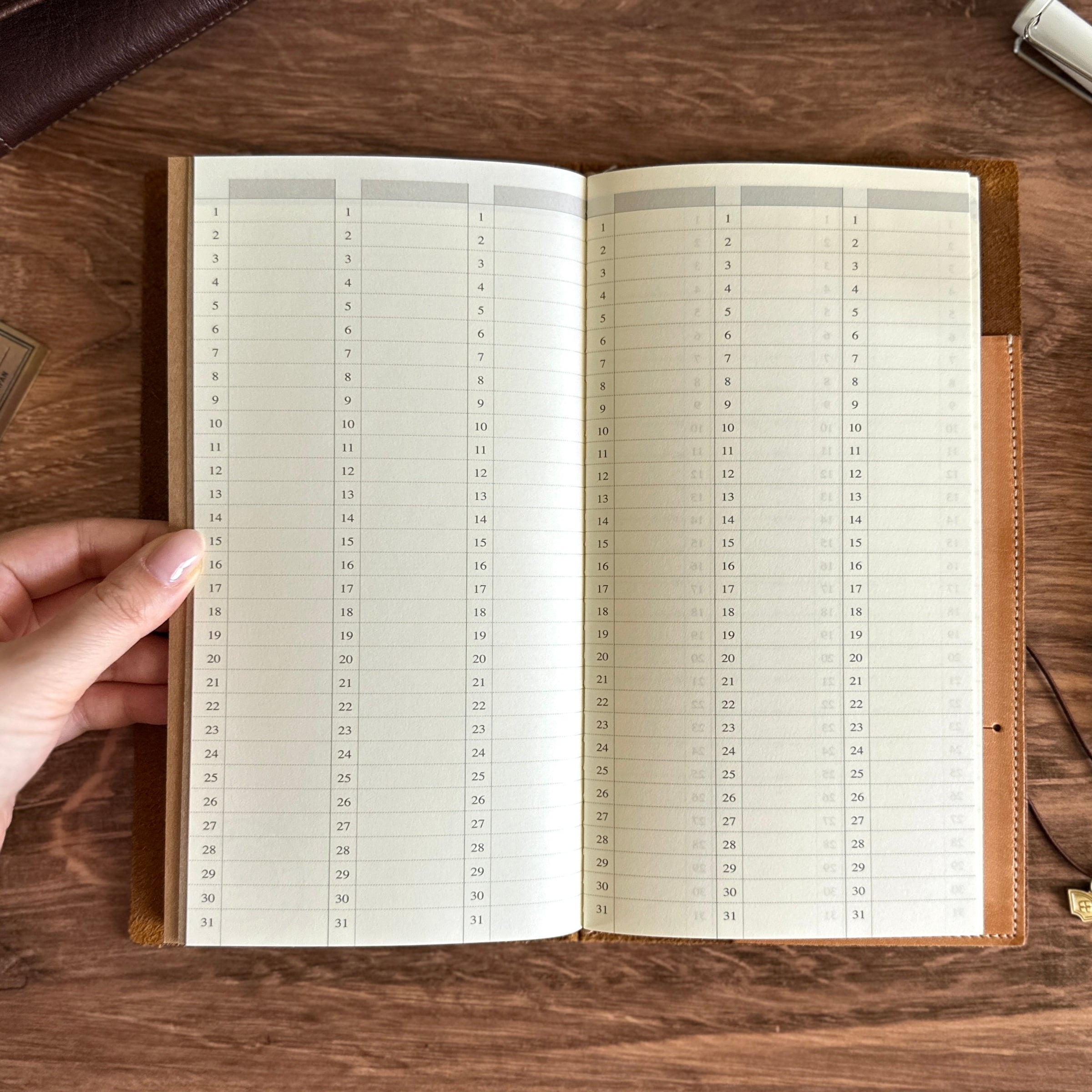 A refillable weekly diary is designed to accompany the Traveler's Notebook leather cover. It can be incorporated inside of the Traveler's Notebook system using the rubber band that comes with the leather cover