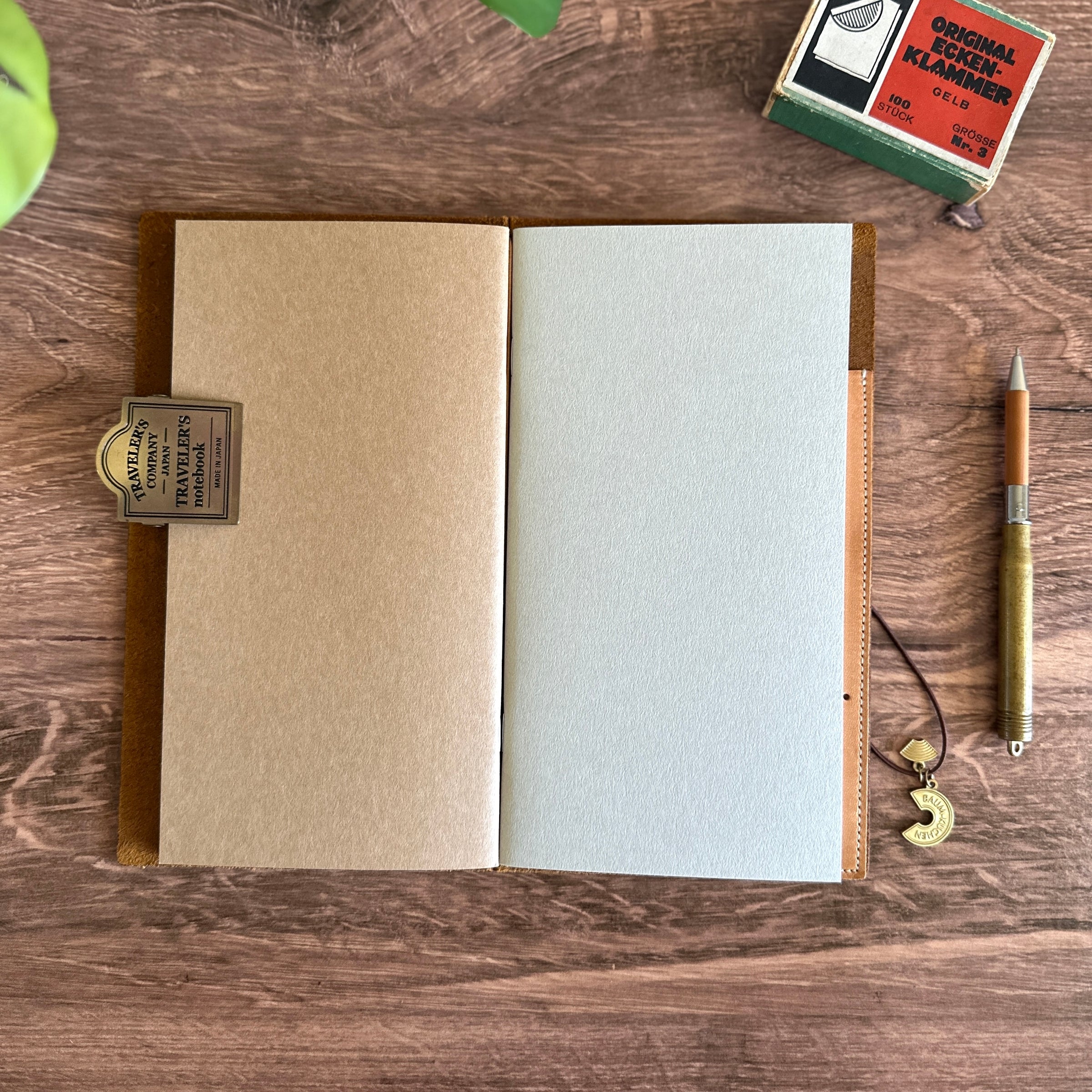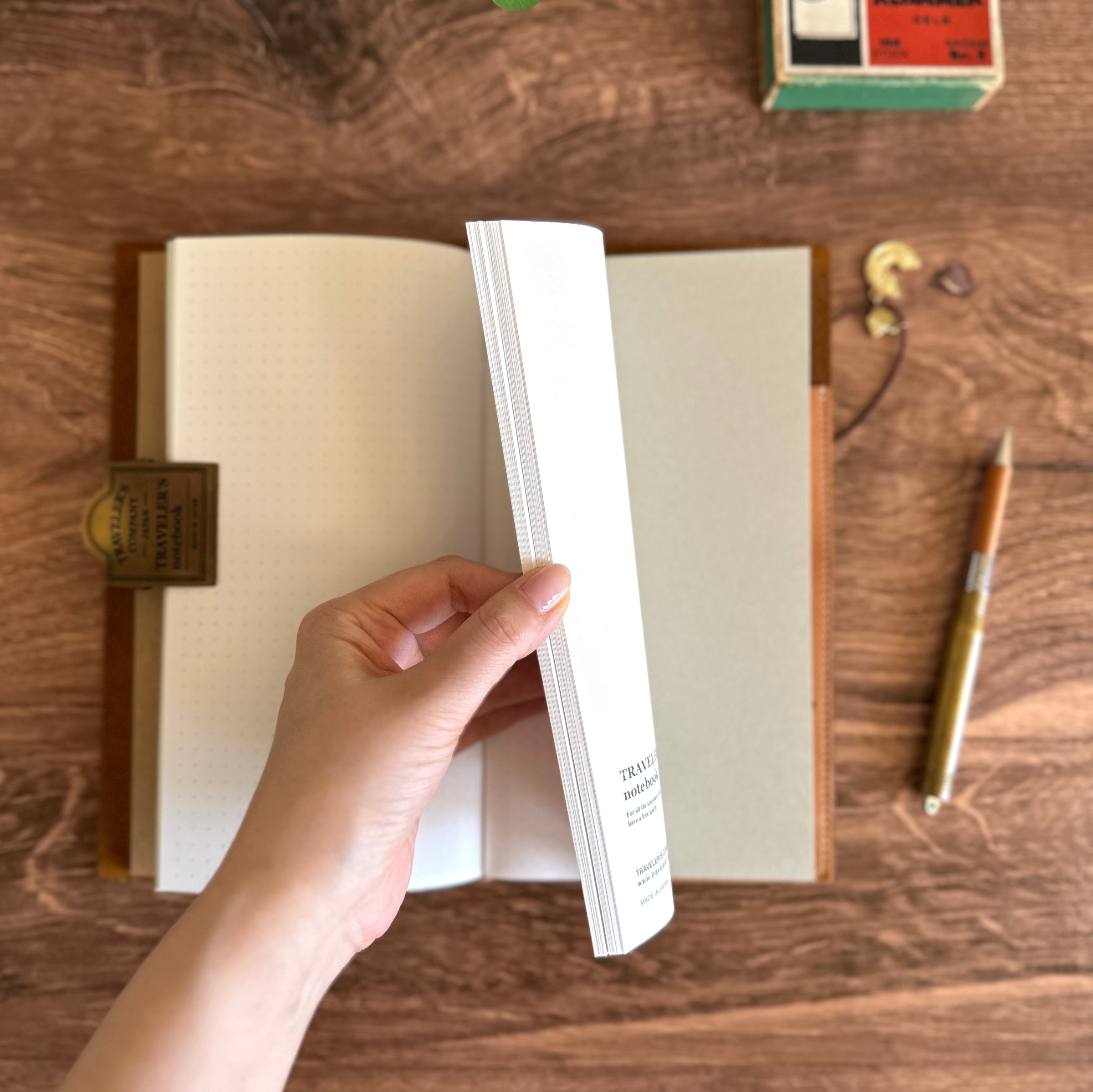 A refillable notebook is designed to accompany the Traveler's Notebook leather cover. It can be incorporated inside the Traveler's Notebook using an elastic band with the leather cover. The refill notebook is made in Japan with Midori's original paper. The subtle grid will be great for Bullet Journaling, writing, sketching, and more! We hope you enjoy documenting your life adventures!