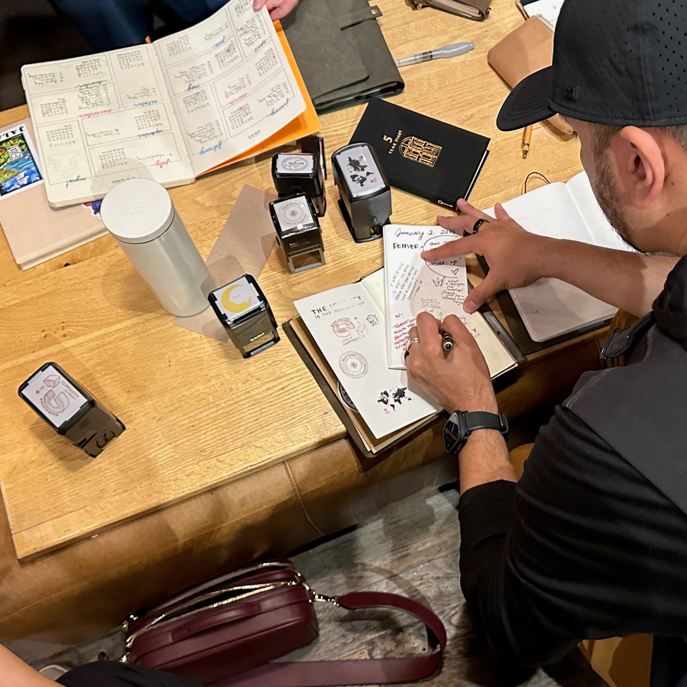 Join Wakako and Frido for an open gathering of like-hearted analogue enthusiasts to exchange inspiration and creativity. We will get together at a designated public location to spend time with each other and share our mutual love for all things analogue. We plan to bring some of the curated self-inked stamps exclusively designed by Baum-kuchen so you can add some fun elements to your journaling pages!