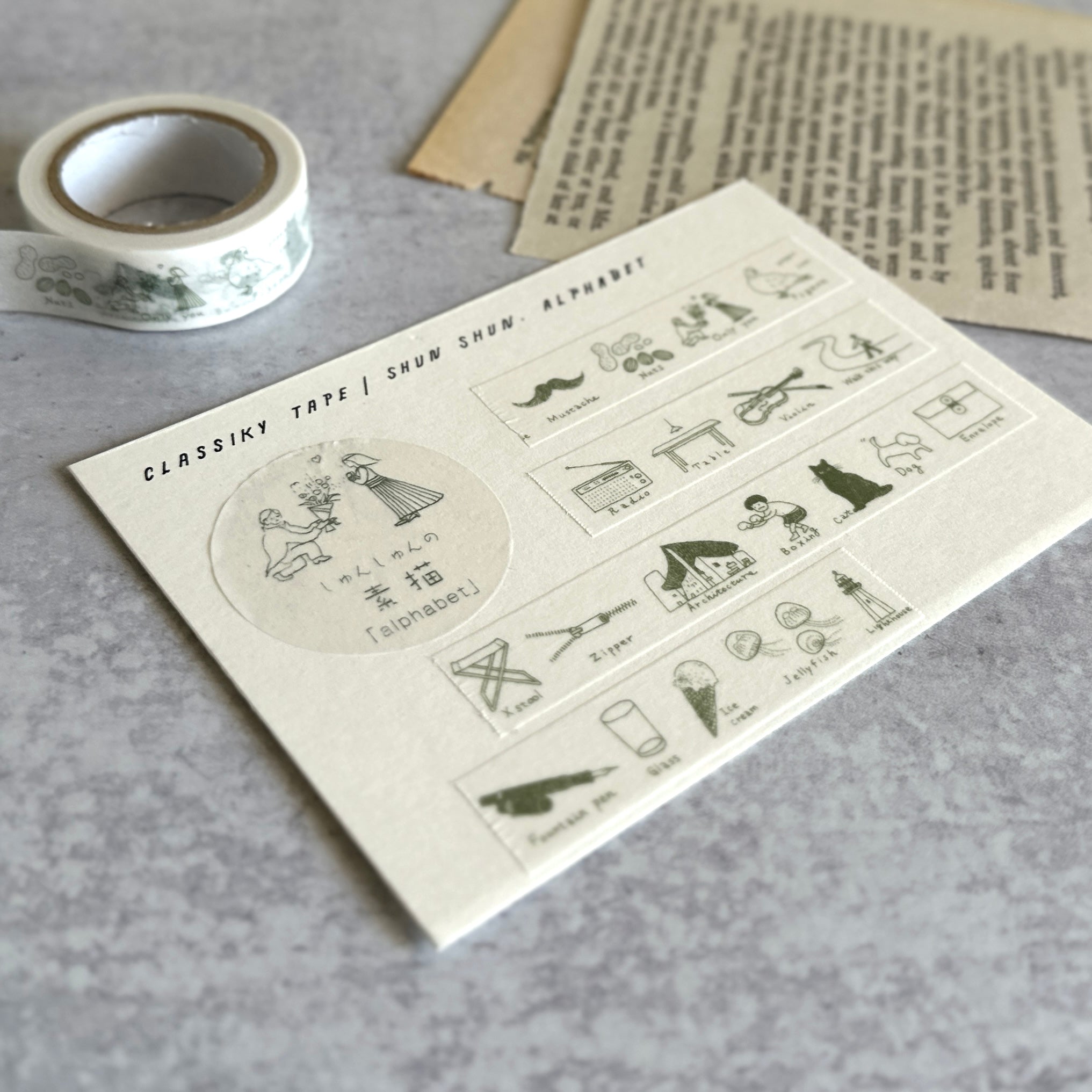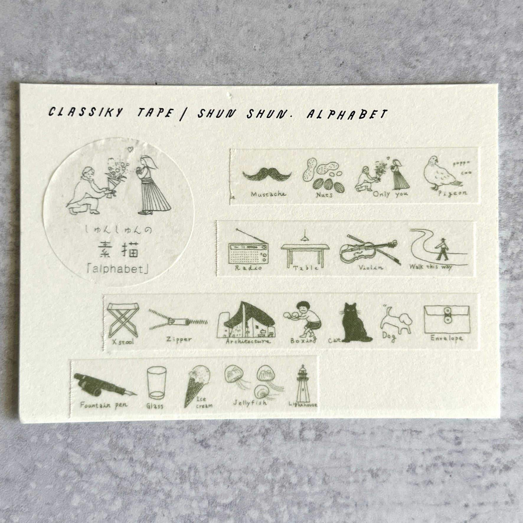 Take a playful journey through the alphabet as envisioned by artist Shun Shun. Each letter unfolds into a delightful life vignette! Choose the illustrations that delight your heart and let them brighten your journal pages, snail mail, and all the little moments in between.