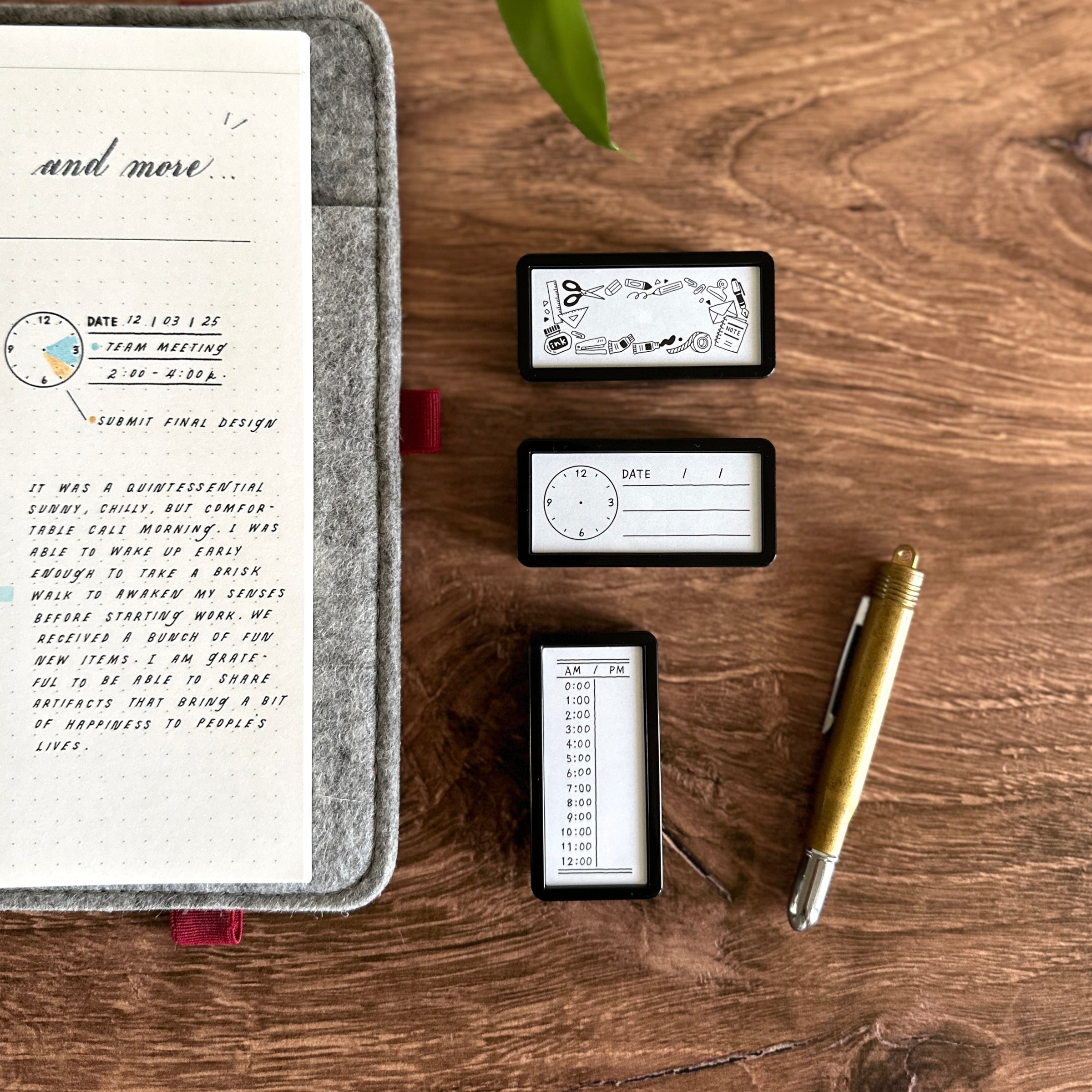 Logging your favorite analogue activities in your journal has never been fun or easier! These pre-inked stamps stack neatly on top of each other, so they are within reach when inspiration strikes. We love that the oil-based formulation, once dry, is waterproof, allowing you to paint or color in the details with paints, markers, or highlighters. We hope you enjoy them to record special memories or add playful touches to your journals!